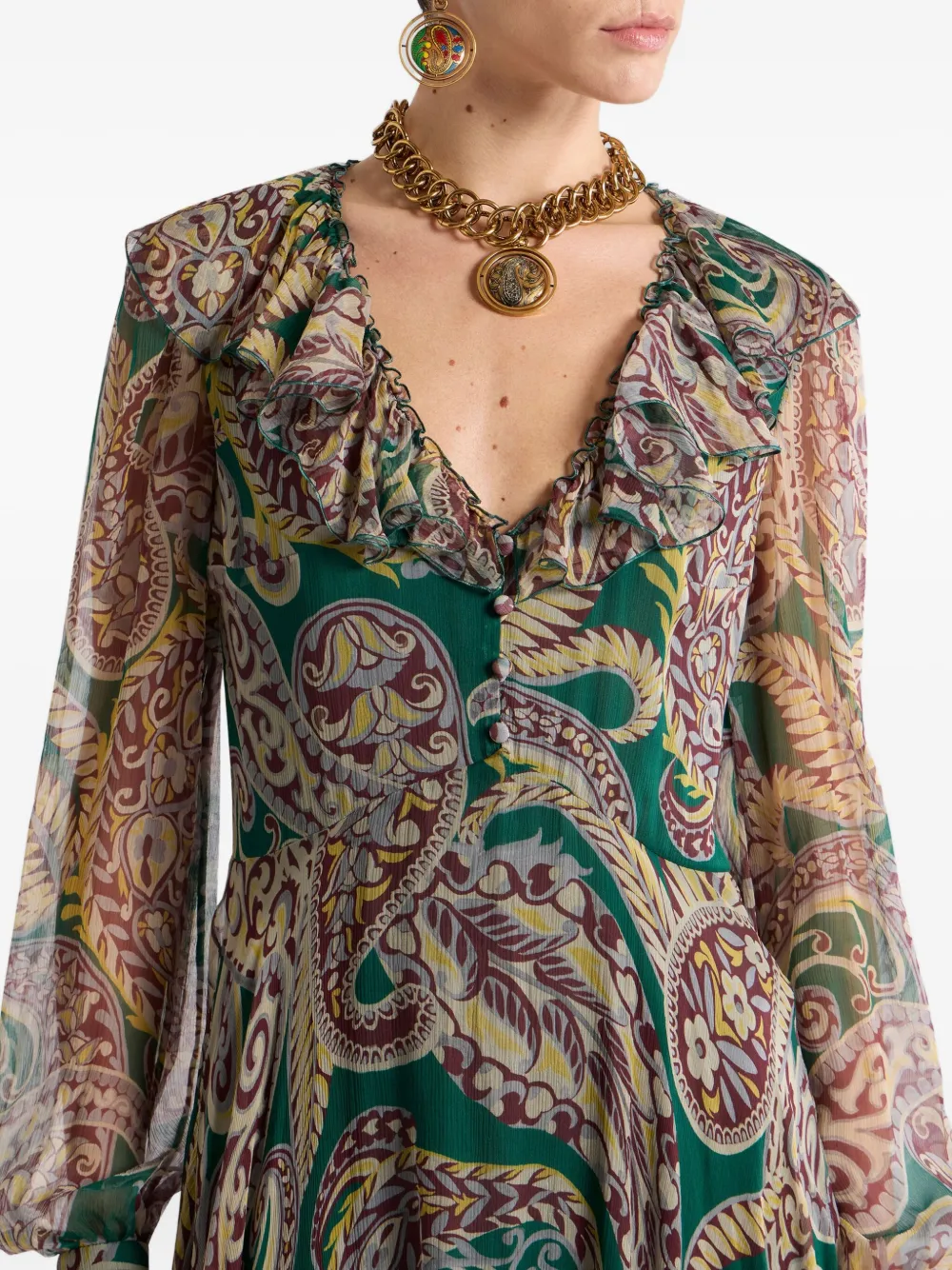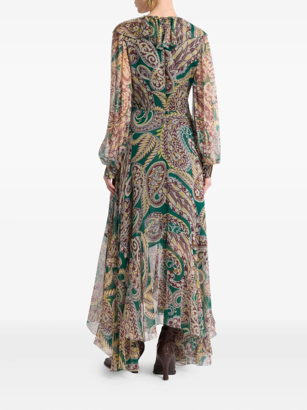 Платье макси с оборками и принтом пейсли ETRO, зеленый