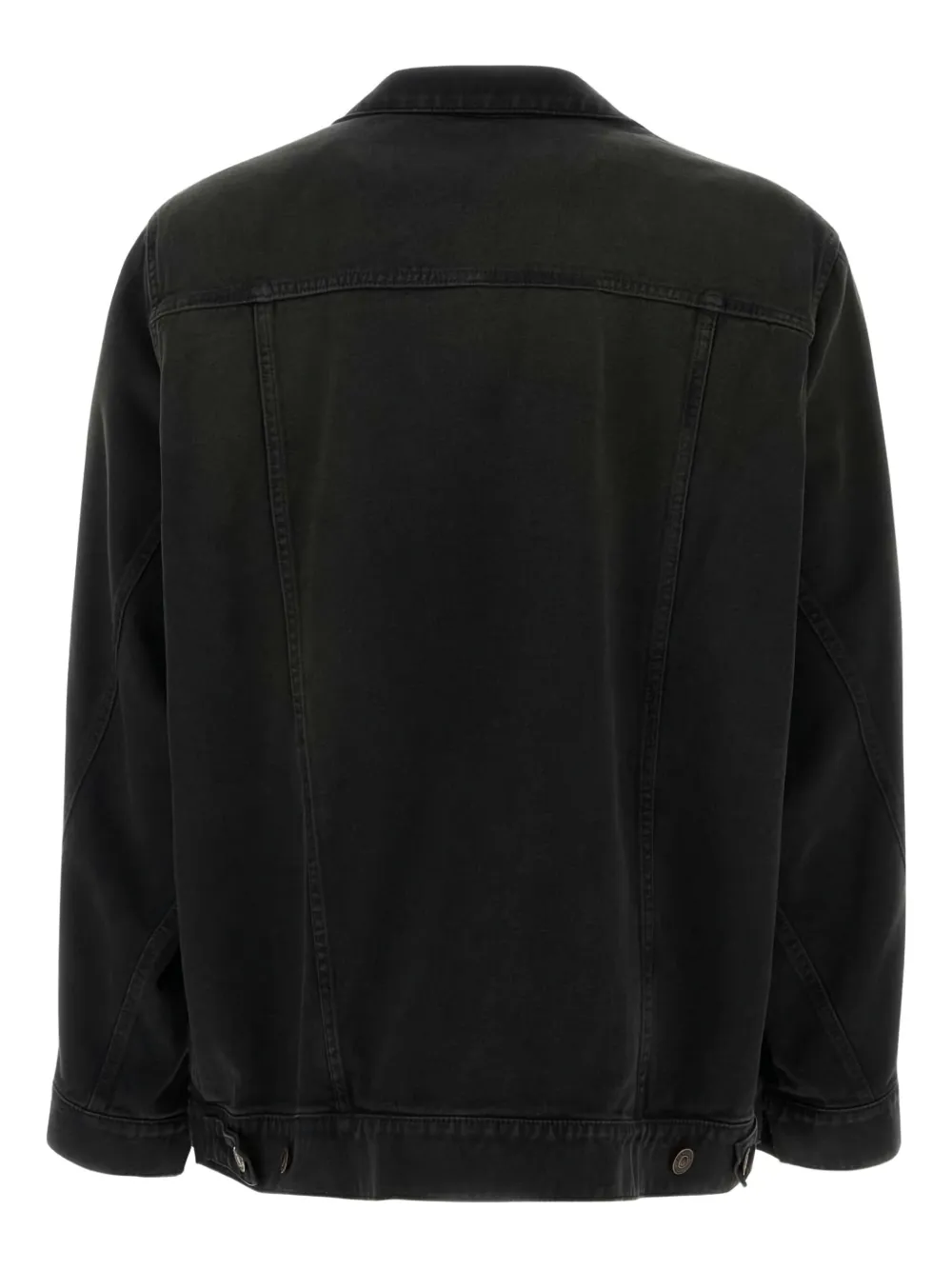 Черная джинсовая ткань саржевого переплетения с зазубренными лацканами