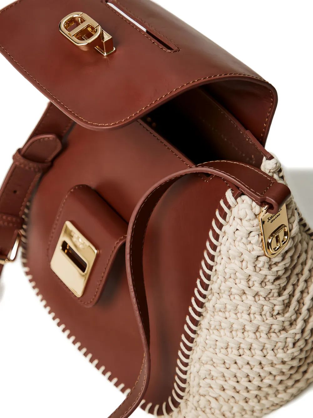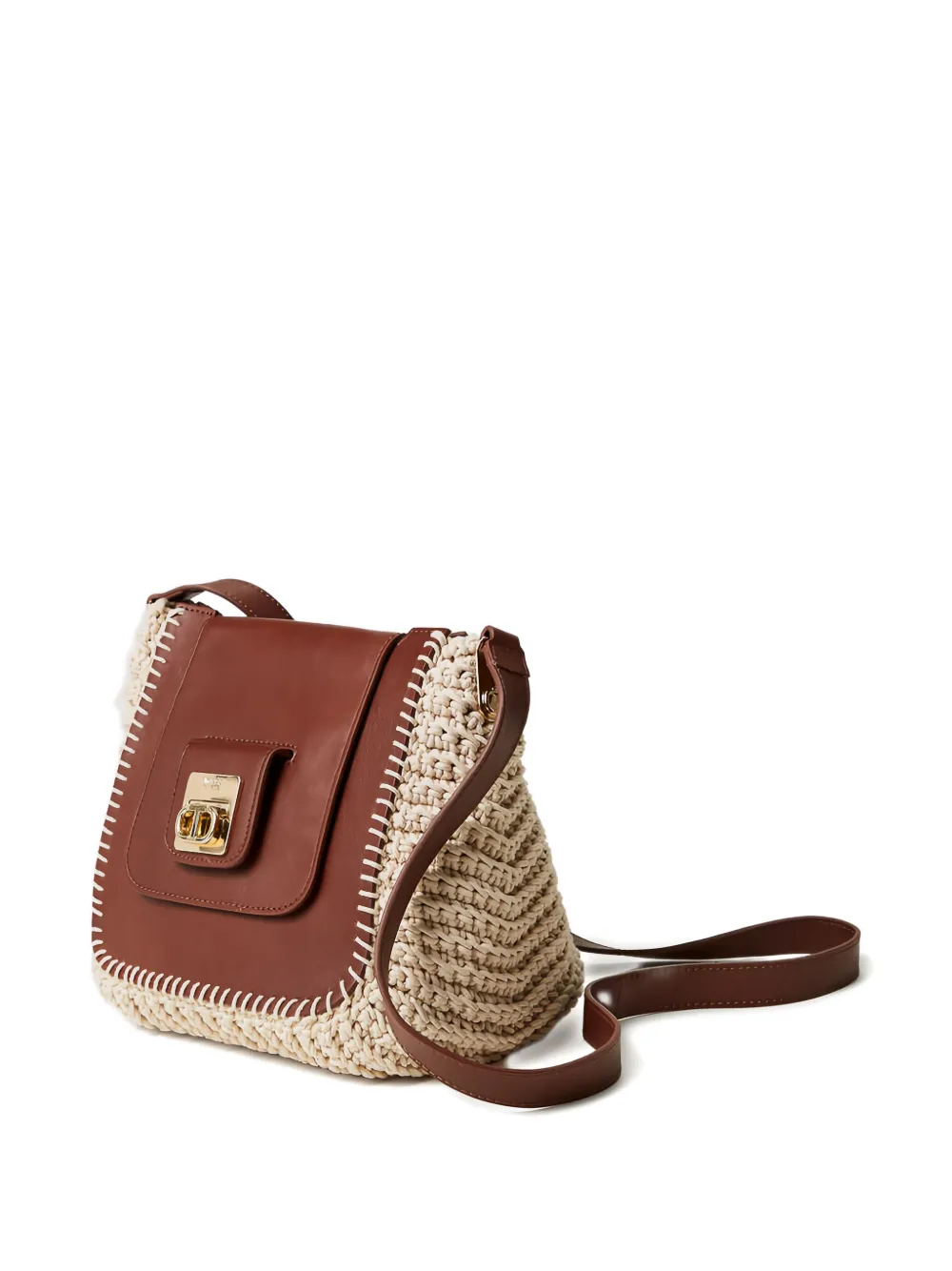 Сумка через плечо из кожи с панелями TWINSET, коричневый