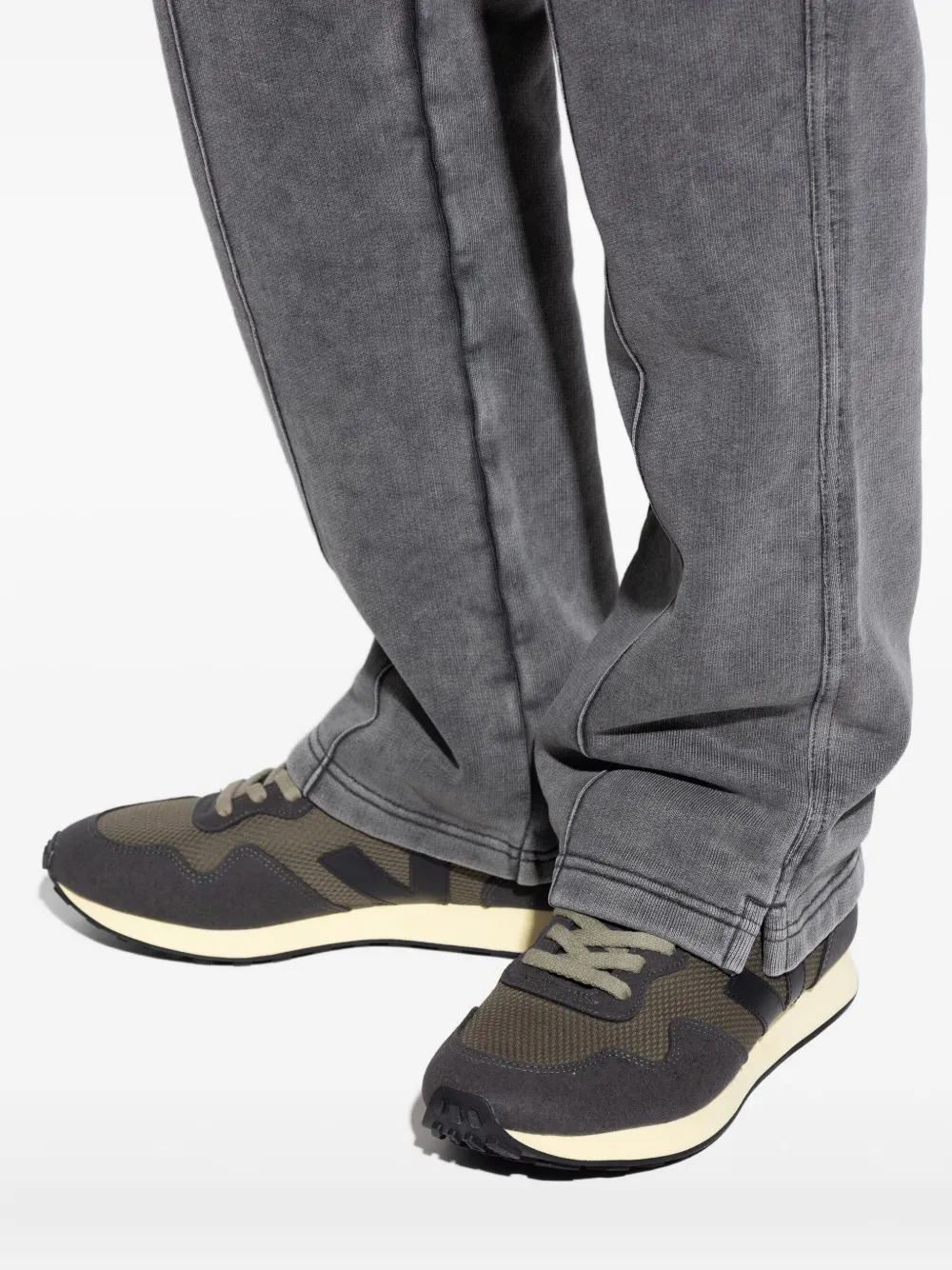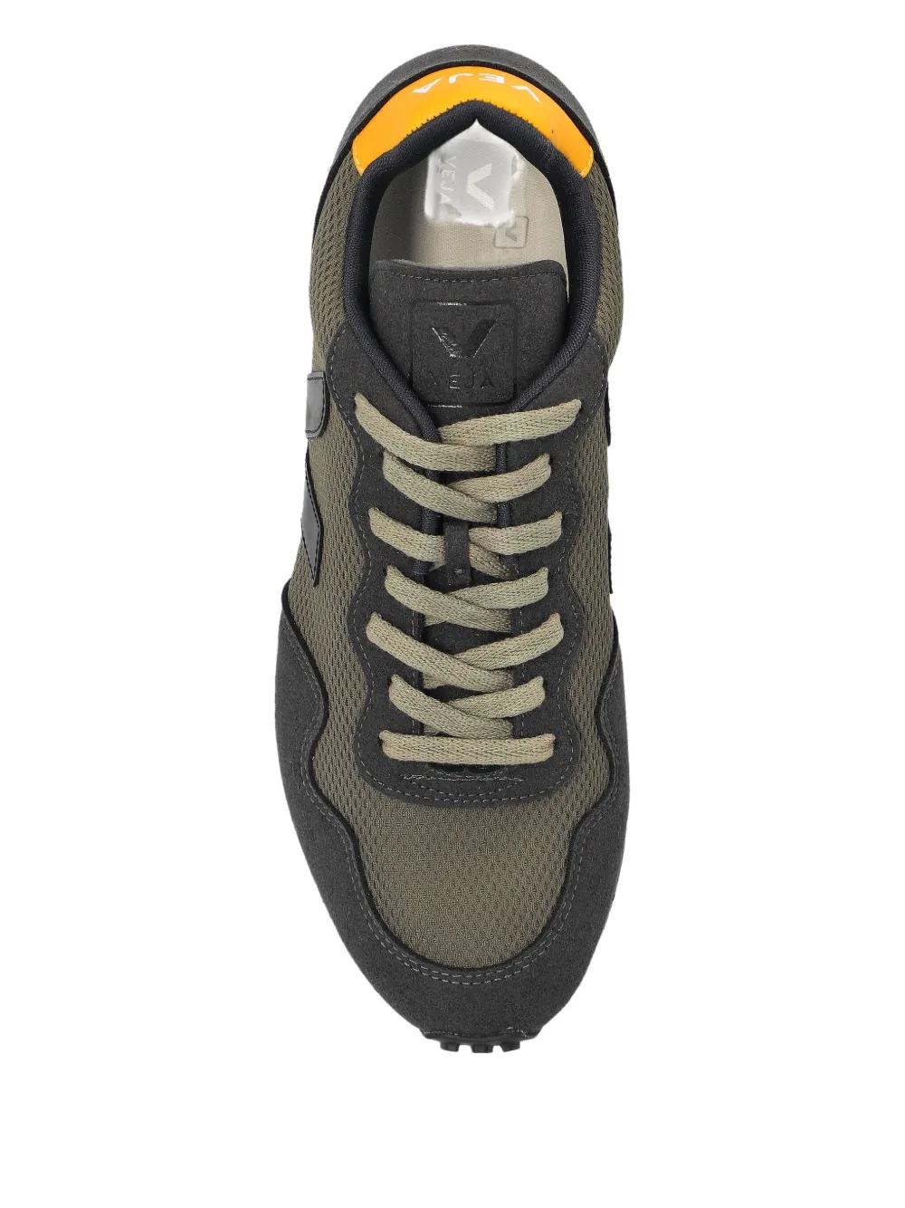 Вставки из замши оливково-зеленого цвета, контрастная межподошва, шнуровка