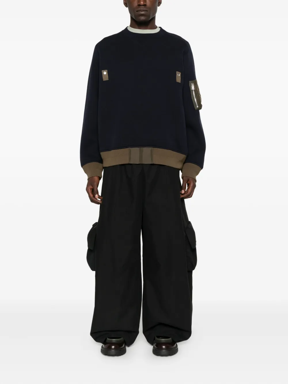 Карман на рукаве с застежкой-молнией, отделкой из пуговиц темно-синего цвета