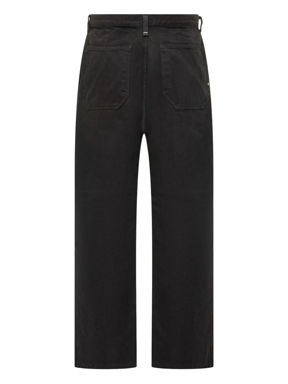 Черные плиссированные передние карманы, прорезные карманы на пуговицах, прямые штанины
