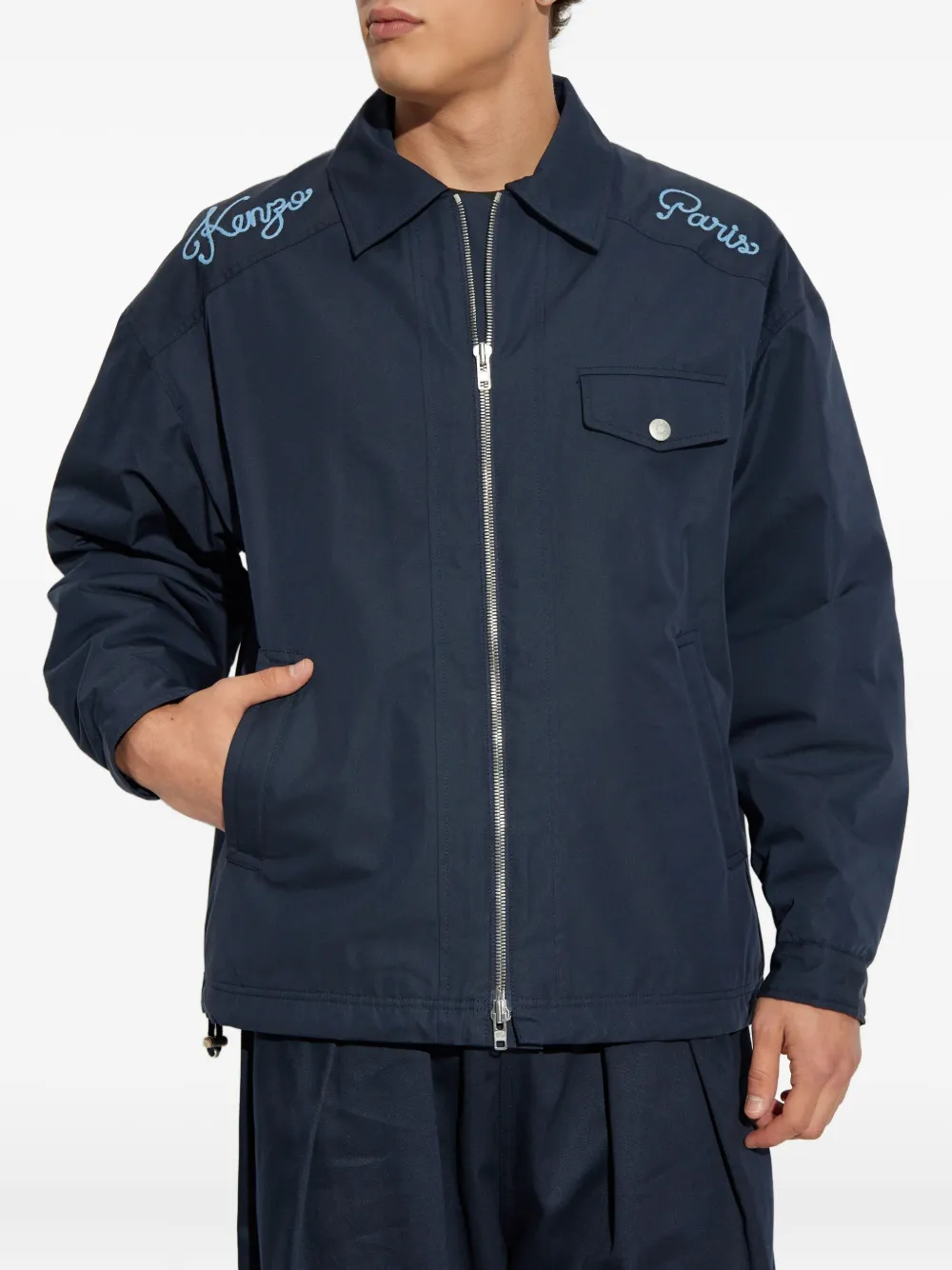 Темно-синий Kenzo Paris, вышивка, застежка-молния спереди, нагрудный карман, манжеты на пуговицах