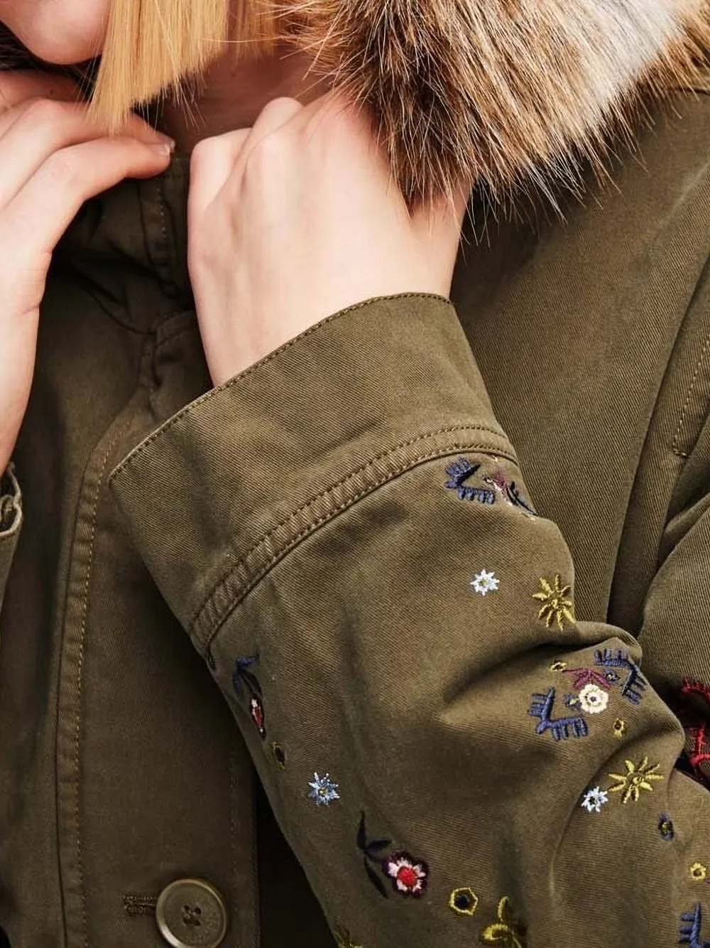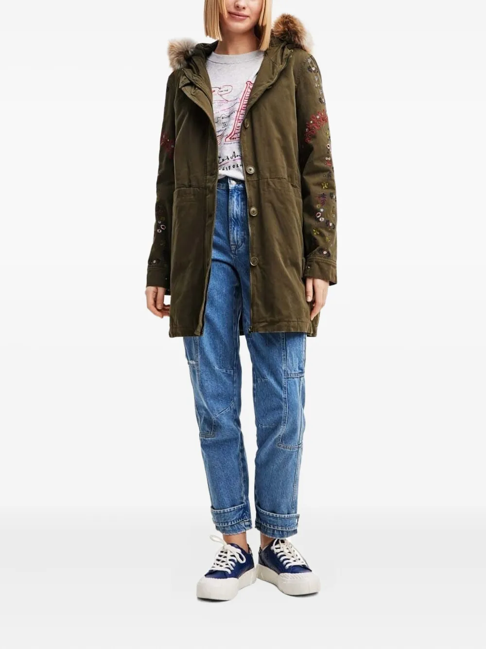 Парка с цветочной вышивкой Desigual, зеленый