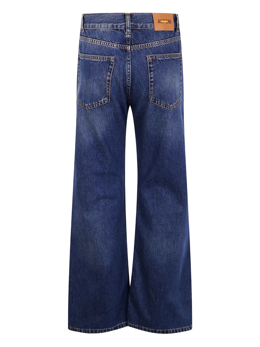 Джинсовая ткань, оранжевая строчка, нашивка сзади, пять карманов, гульфик на пуговицах