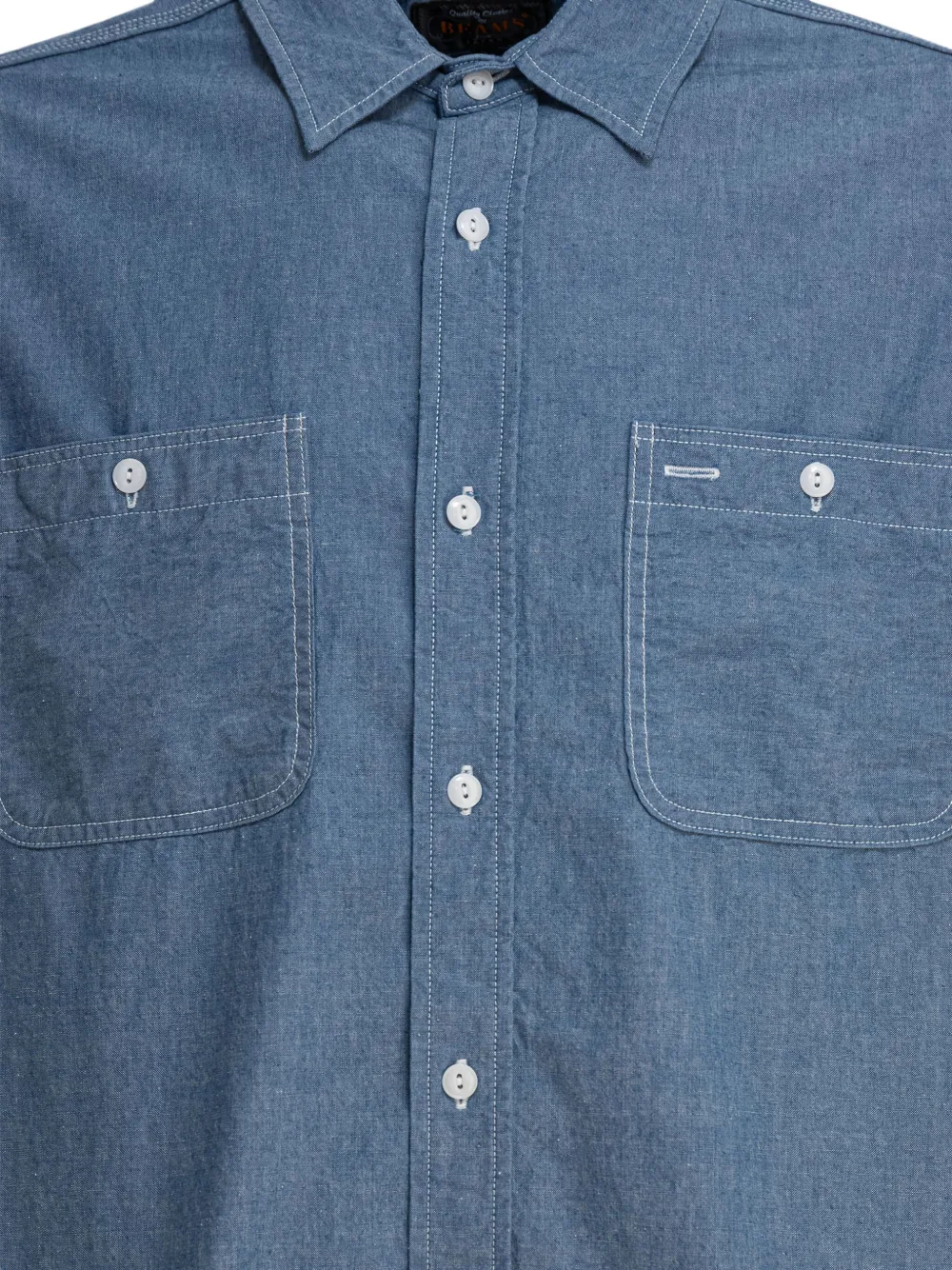 Рубашка из хлопка с накладными карманами BEAMS PLUS, синий