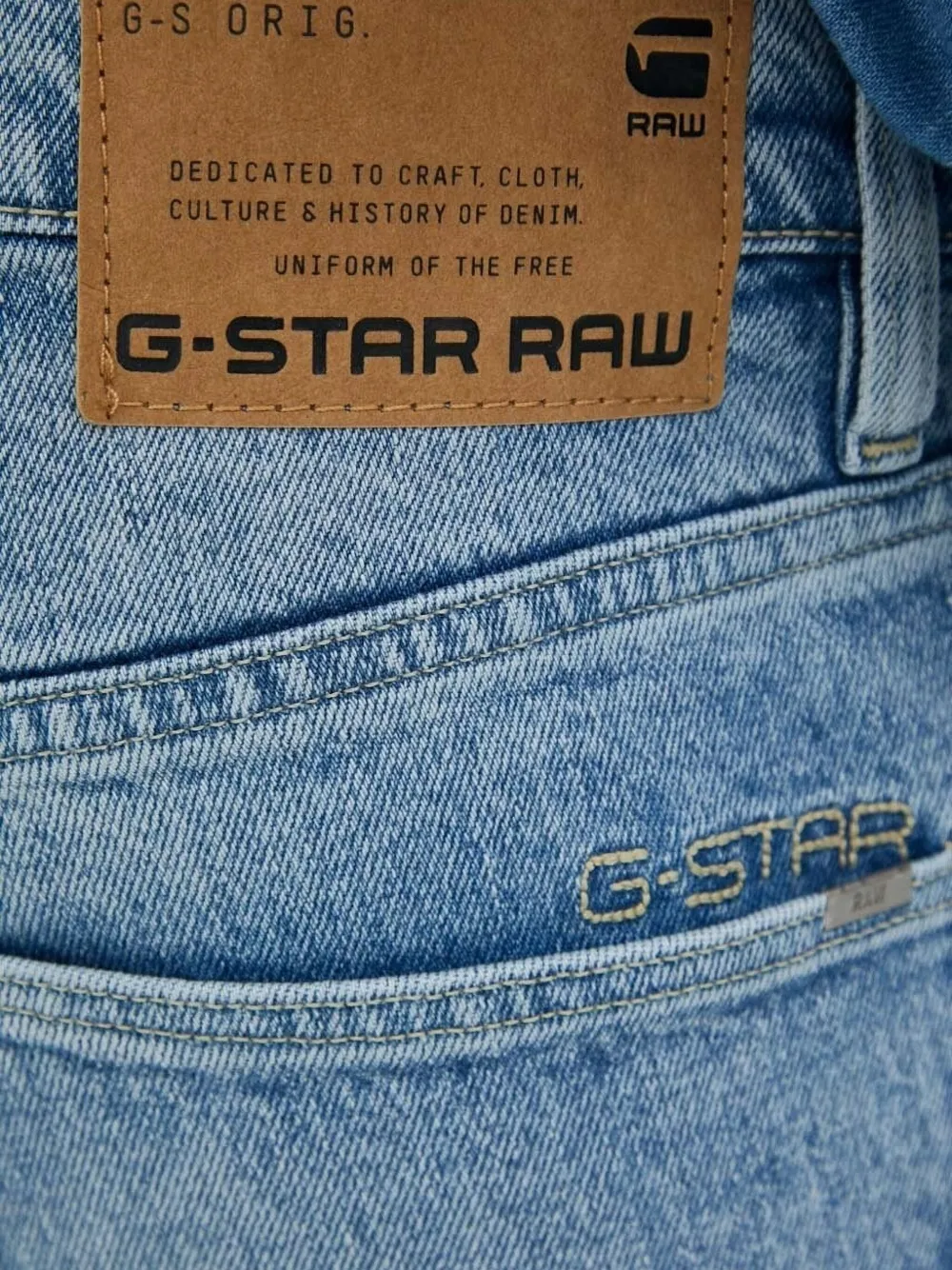 Светло-голубая нашивка с логотипом G-Star Raw, пять карманов, ширинка на пуговицах, прямые штанины, шлевки для ремня