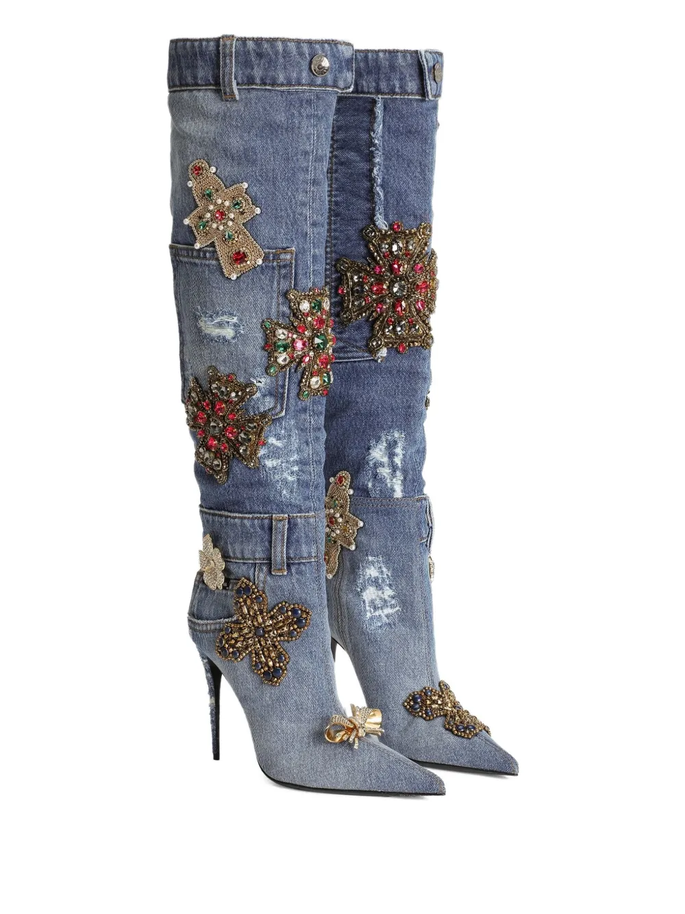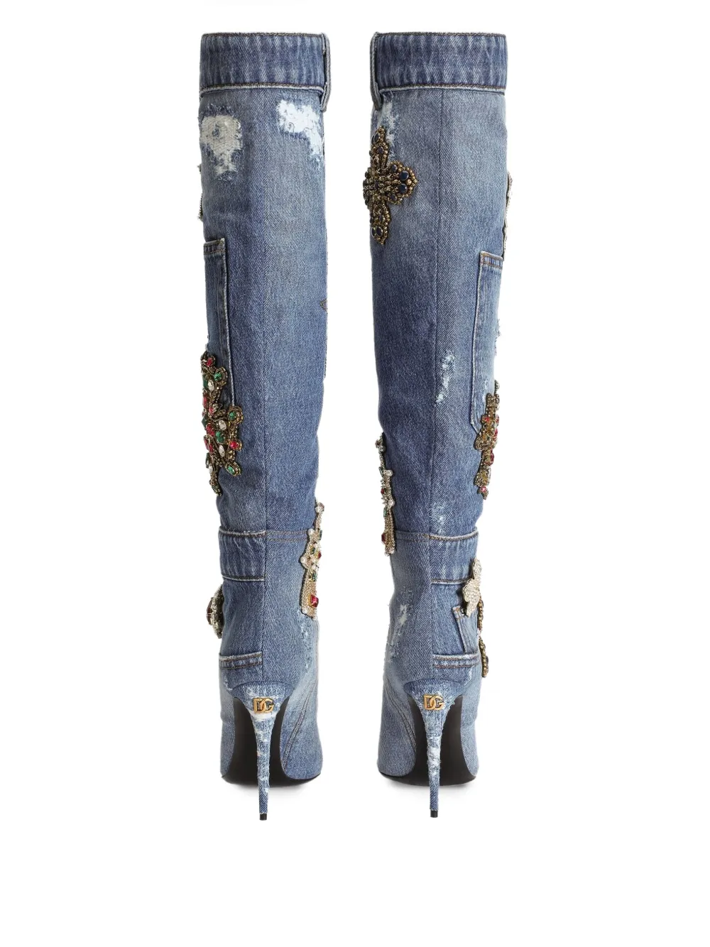 Джинсовые сапоги в технике пэчворк DOLCE & GABBANA, синий
