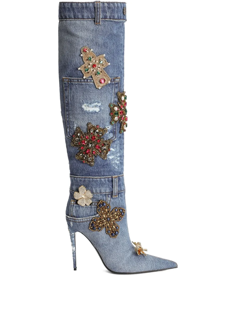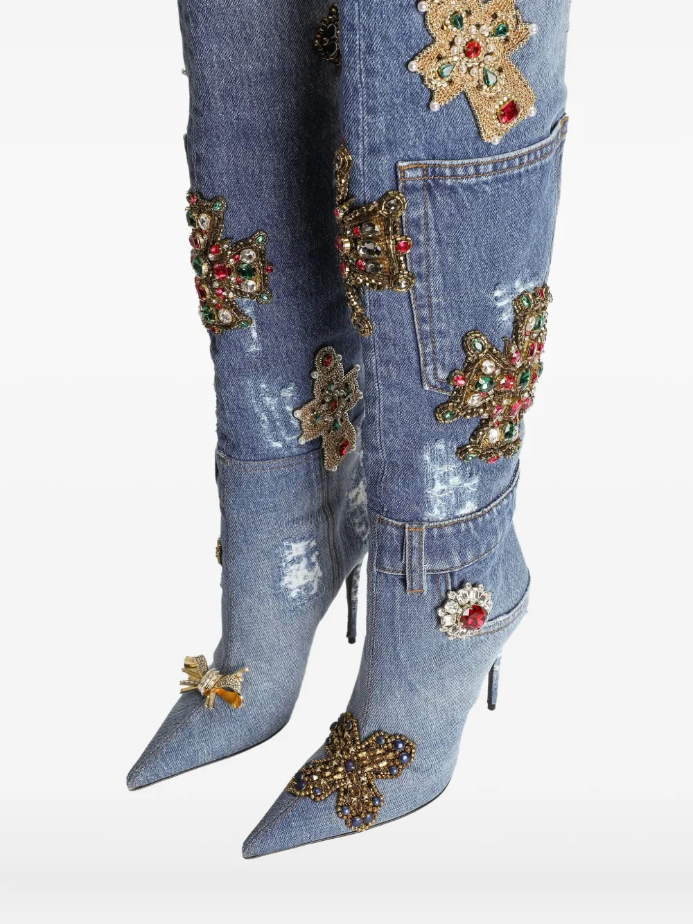 Джинсовые сапоги в технике пэчворк DOLCE & GABBANA, синий 540 385₽