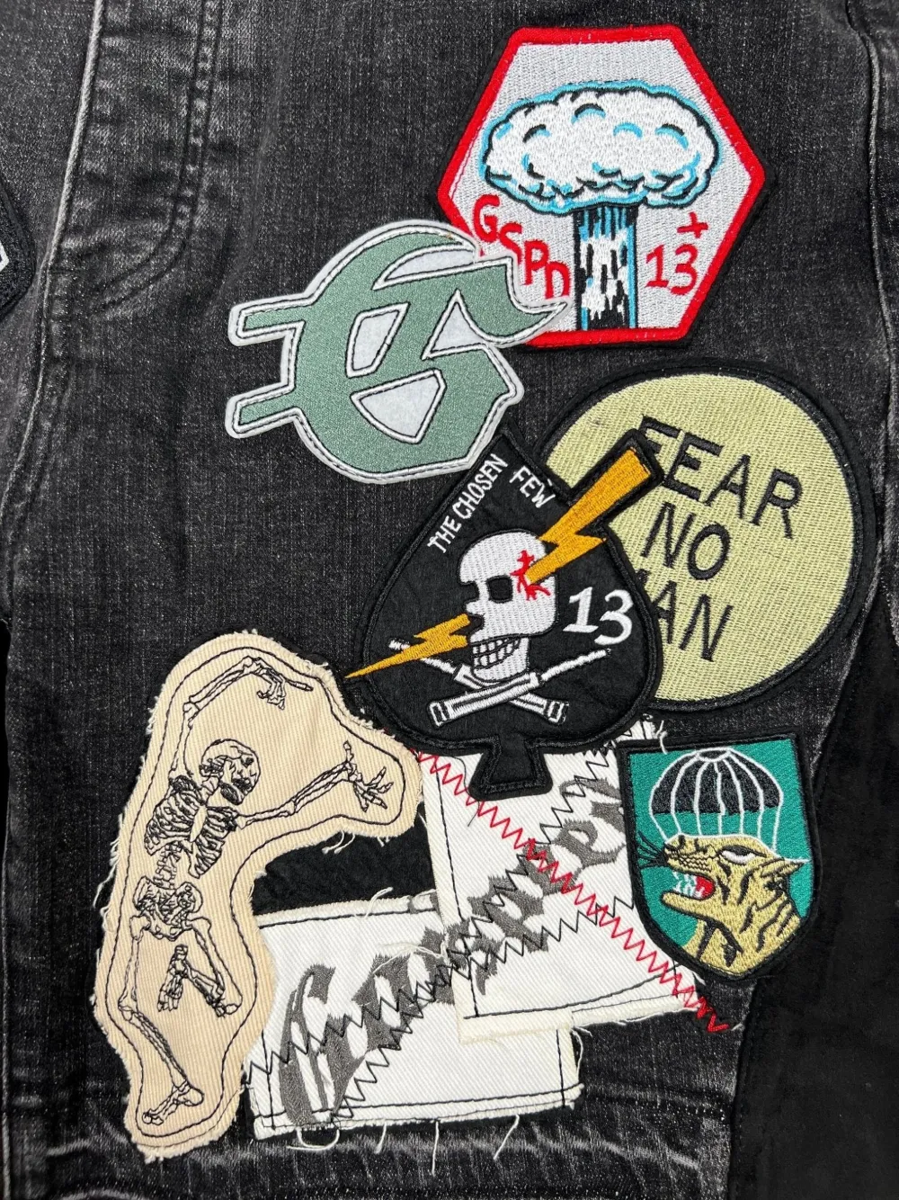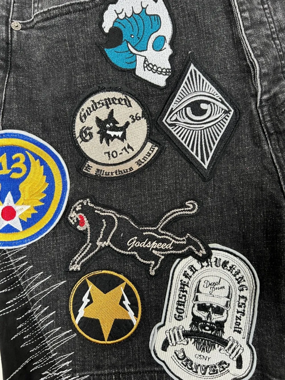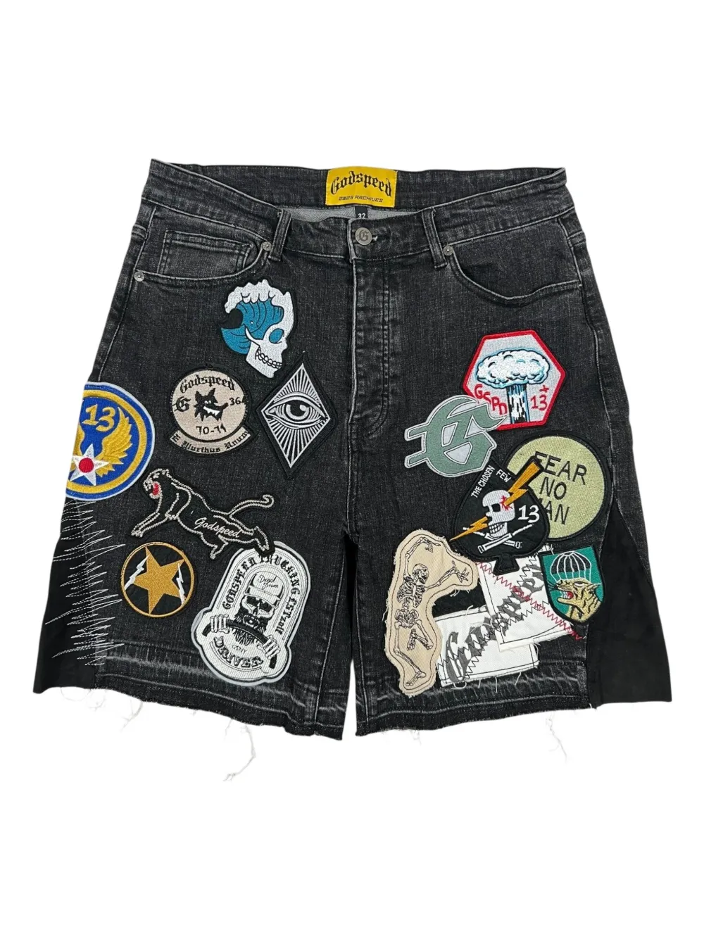 Джинсовые шорты в технике пэчворк GODSPEED, черный