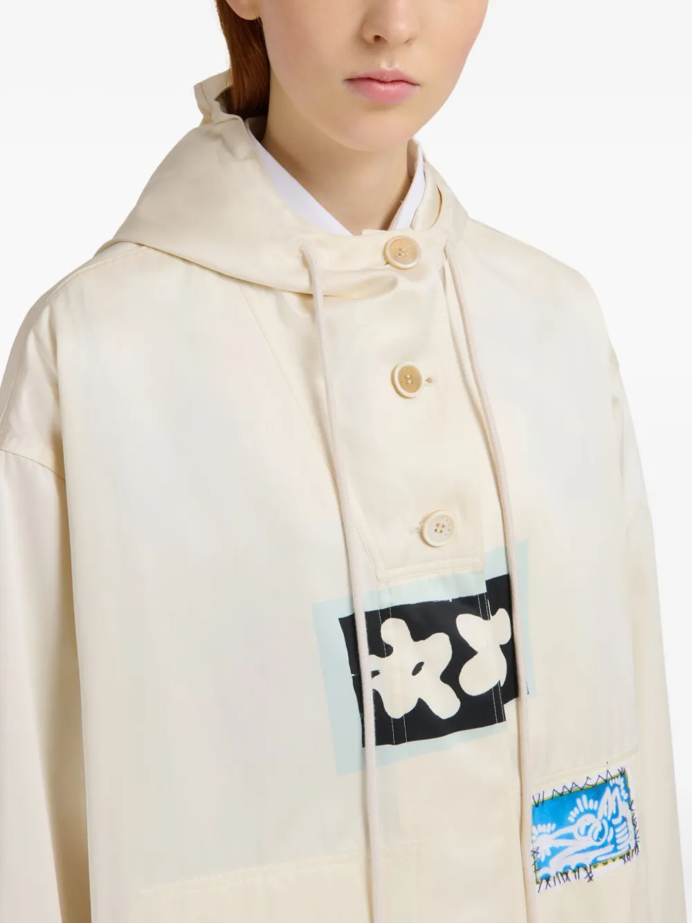 Парка в технике пэчворк с капюшоном Marni, белый