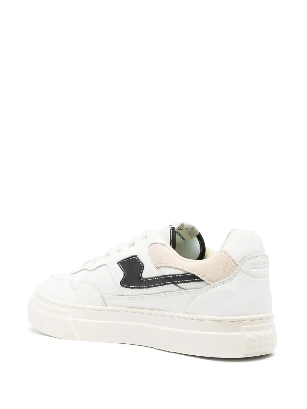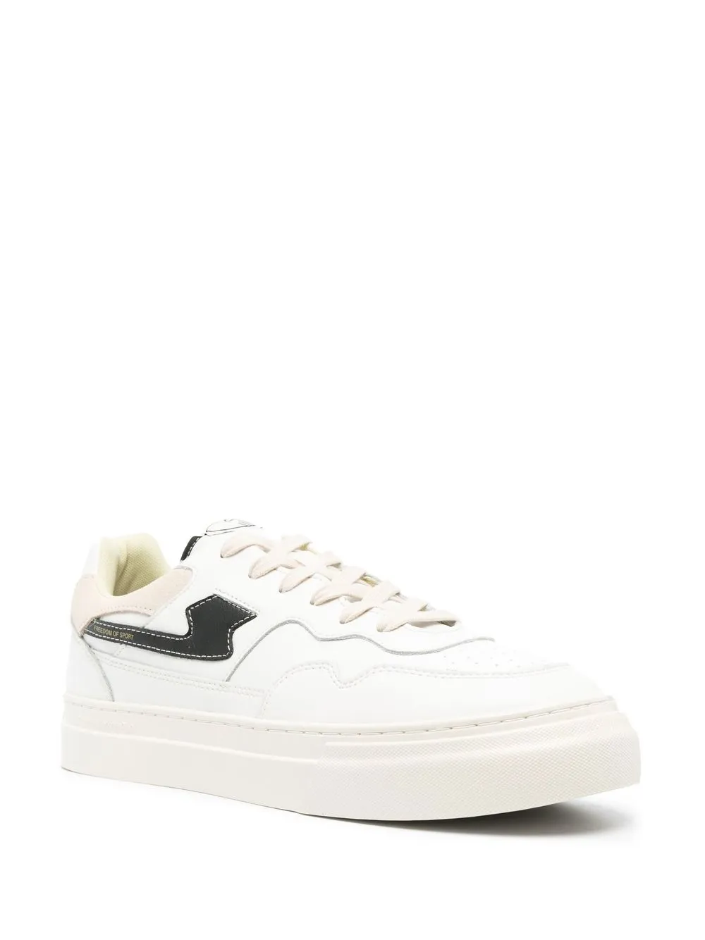 Белый/черный, телячья кожа, вставки, перфорированный носок, нашивка с логотипом сбоку, принт с надписью сбоку, тисненый логотип сбоку, задник с логотипом, тисненый логотип сзади, нашивка с логотипом на язычке, стелька с логотипом, закругленный носок, застежка на пуговицах спереди и плоская резиновая подошва.