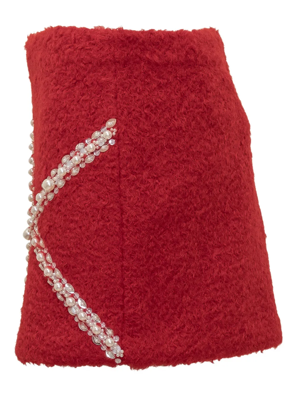 Мини-юбка, украшенная жемчугом DES PHEMMES, красный