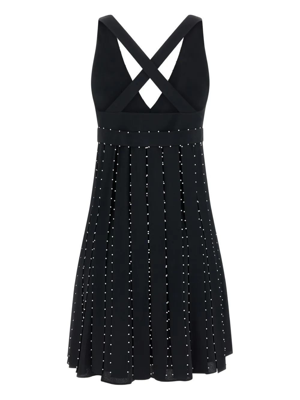 Черная мини-юбка с плиссировкой из жемчуга, V-образный вырез, перекрещенные бретели, застежка-молния сбоку.