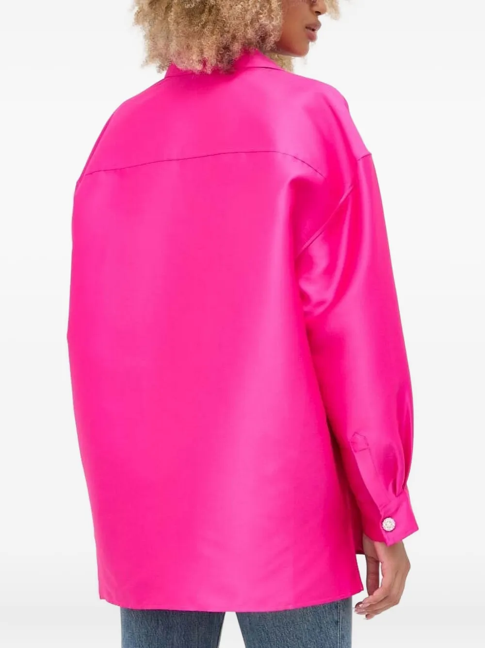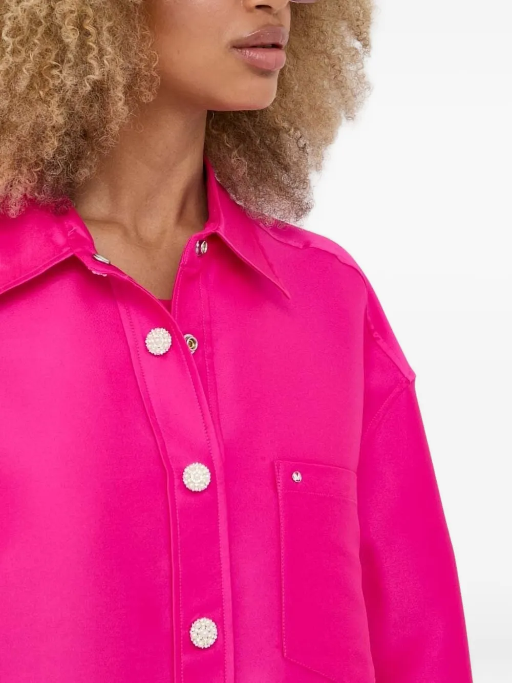 Накладной карман с длинными рукавами, перламутровыми пуговицами цвета фуксии и воротником рубашки