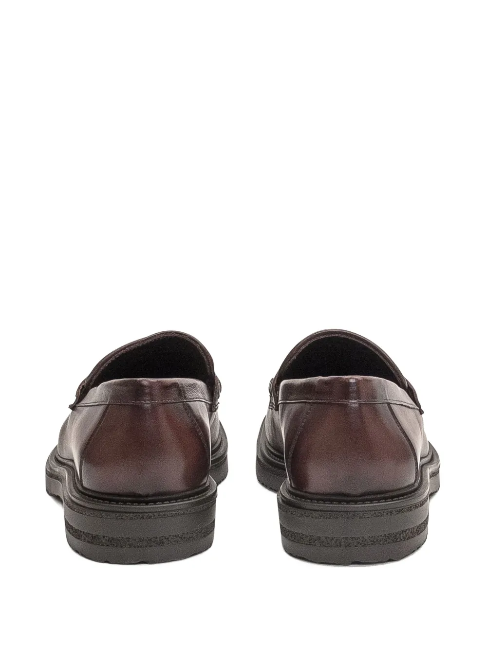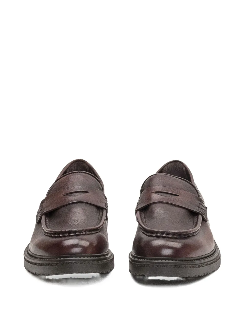 Темно-коричневые кожаные туфли с круглым носком и резиновой подошвой с прорезями для пенни