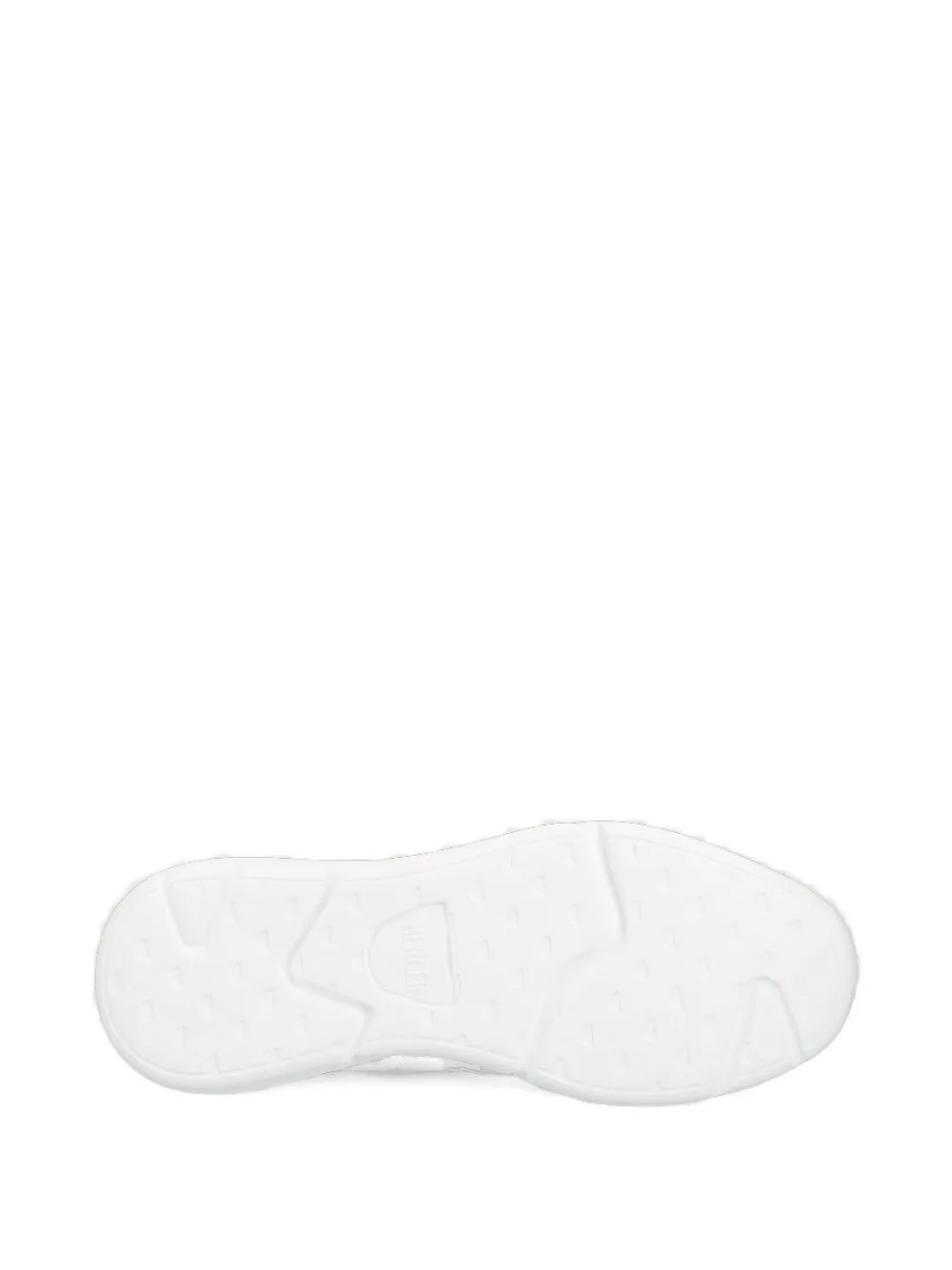 Верх из белой кожи, шнуровка, резиновая подошва.