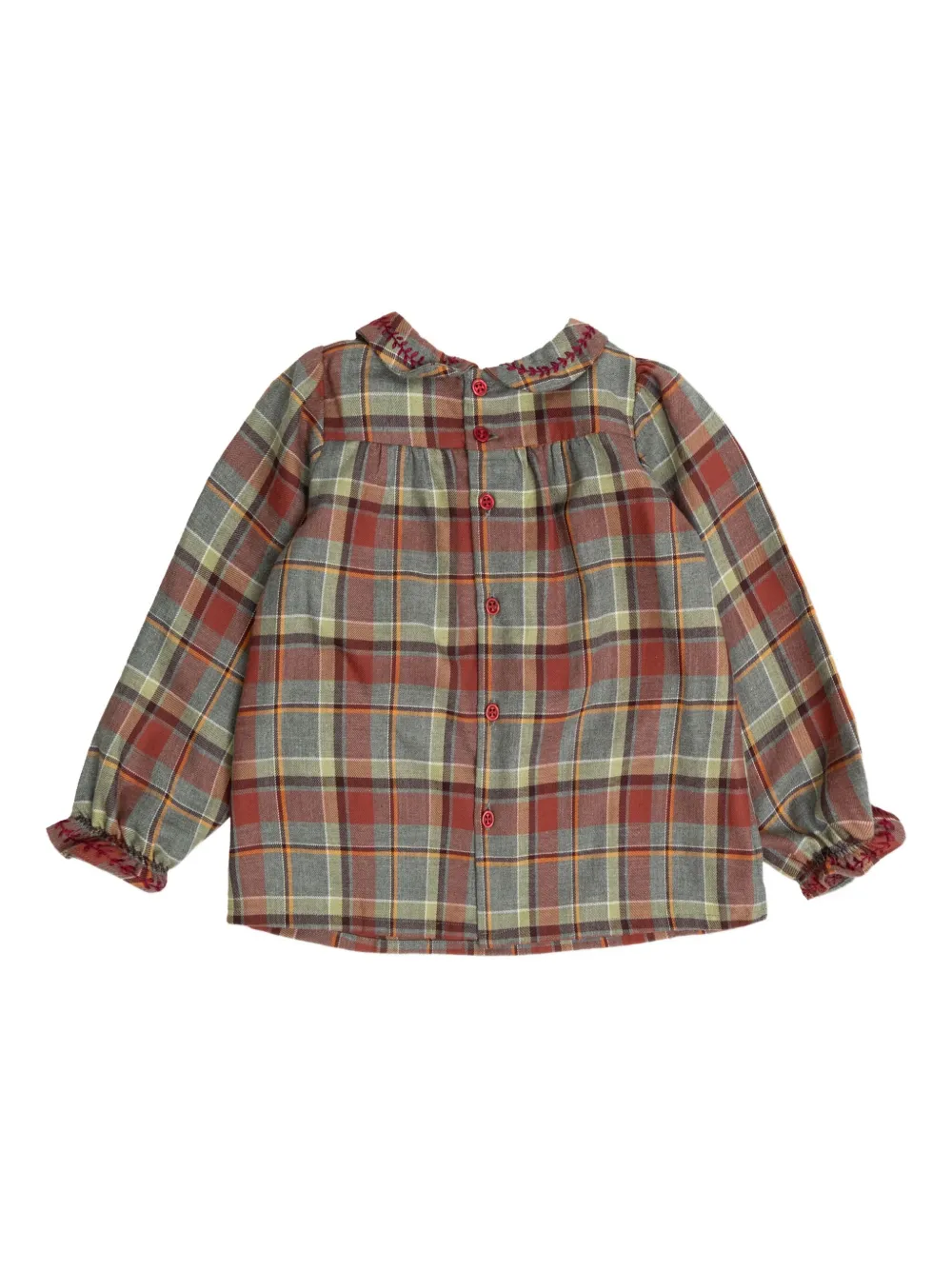 Клетчатая блузка с воротником «Питер Пэн» Bonpoint, серый