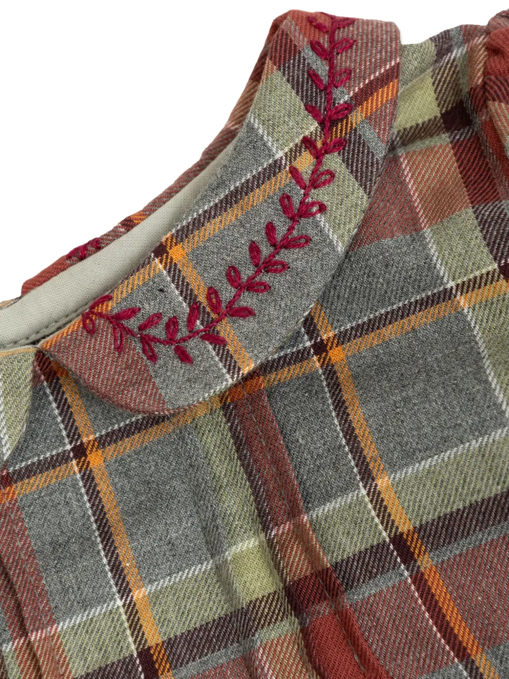 Красный хлопковый клетчатый узор с воротником «Питер Пэн», вышитые детали, оборки на манжетах