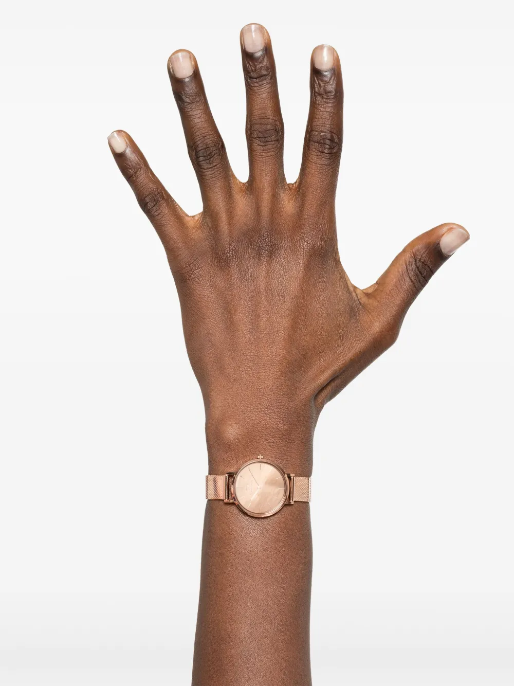 Корпус из нержавеющей стали, кварцевый механизм, розовый циферблат в форме палочки, стрелки-мечи, выгравированный логотип, круглый циферблат, завинчивающаяся заводная головка, сетчатая застежка-браслет, водонепроницаемость до 30 м/3 АТМ.