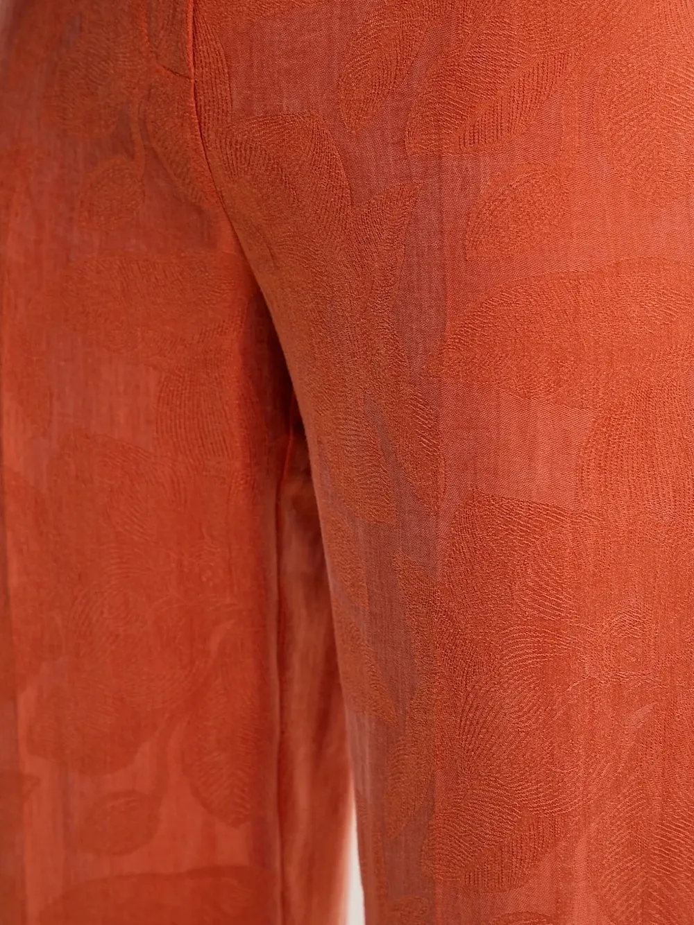 Принт в виде листьев выжженного апельсина, заутюженная складка спереди, потайная застежка