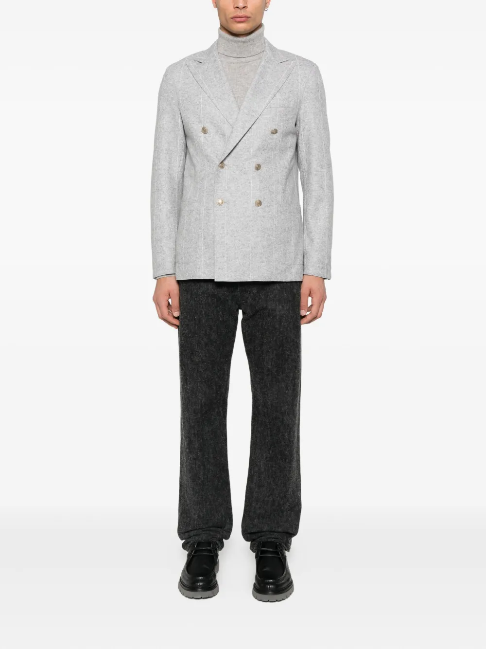 Двубортный пиджак в тонкую полоску Eleventy, серый