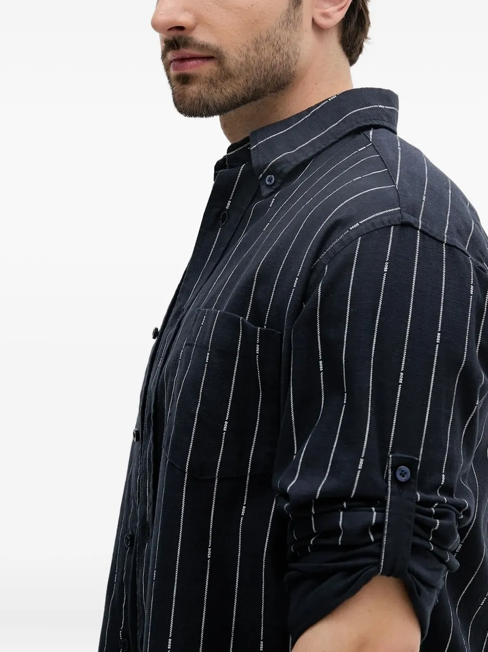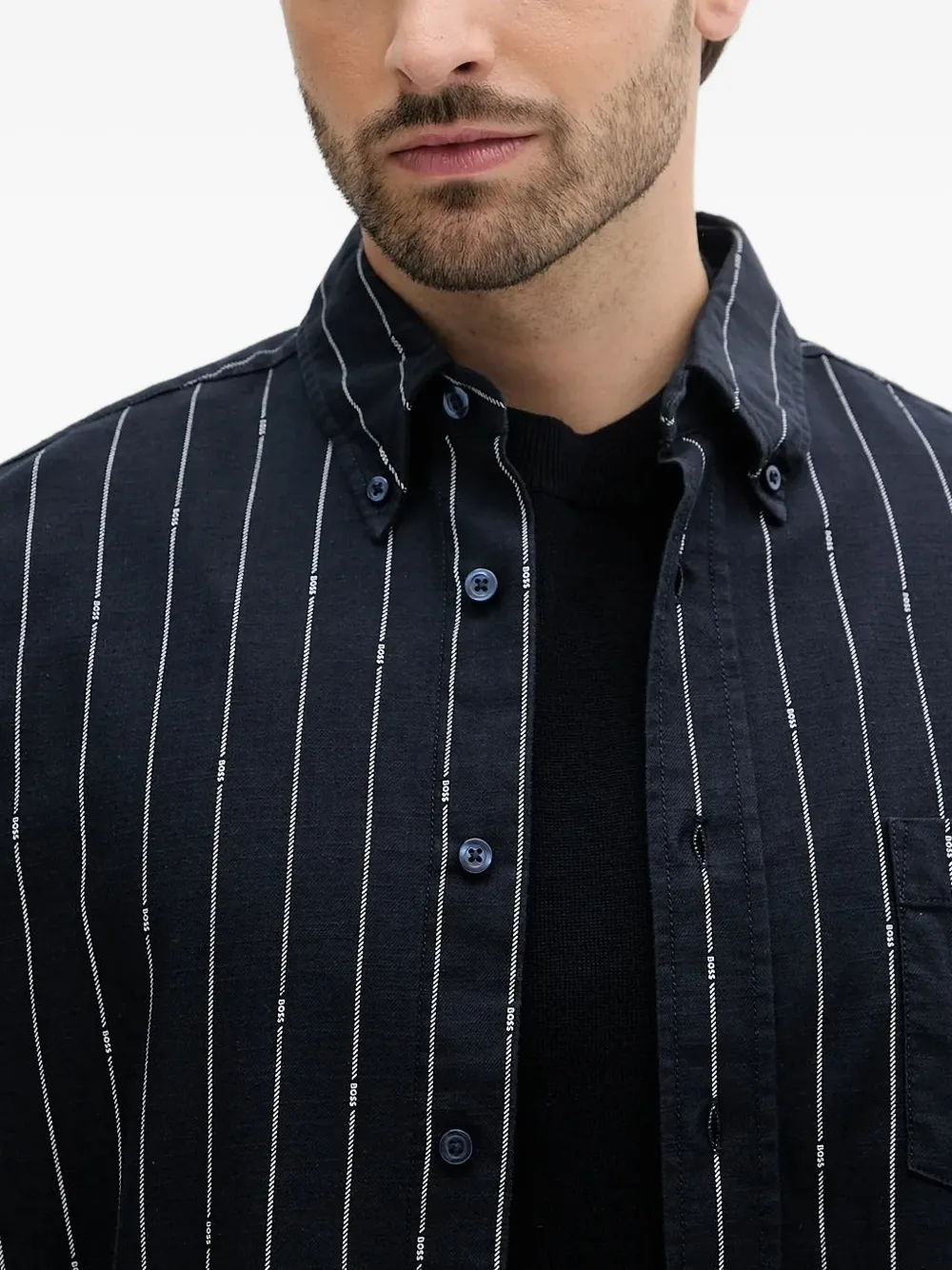 Рубашка в тонкую полоску с логотипом BOSS, синий