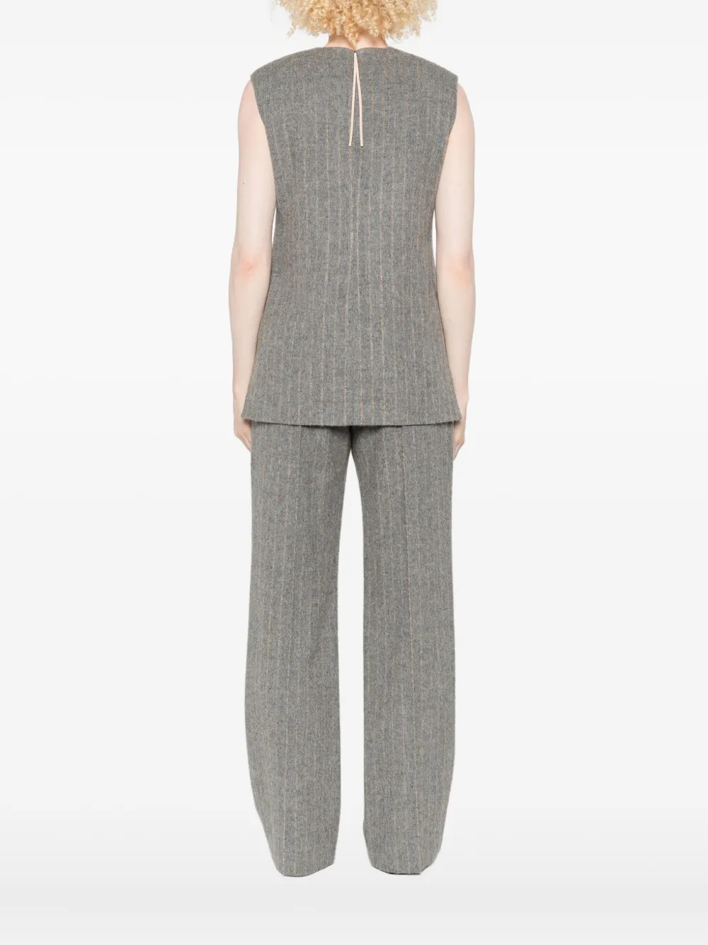 Серый узор в тонкую полоску, без рукавов, застежка-молния, прямой подол