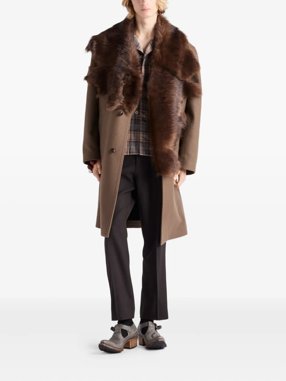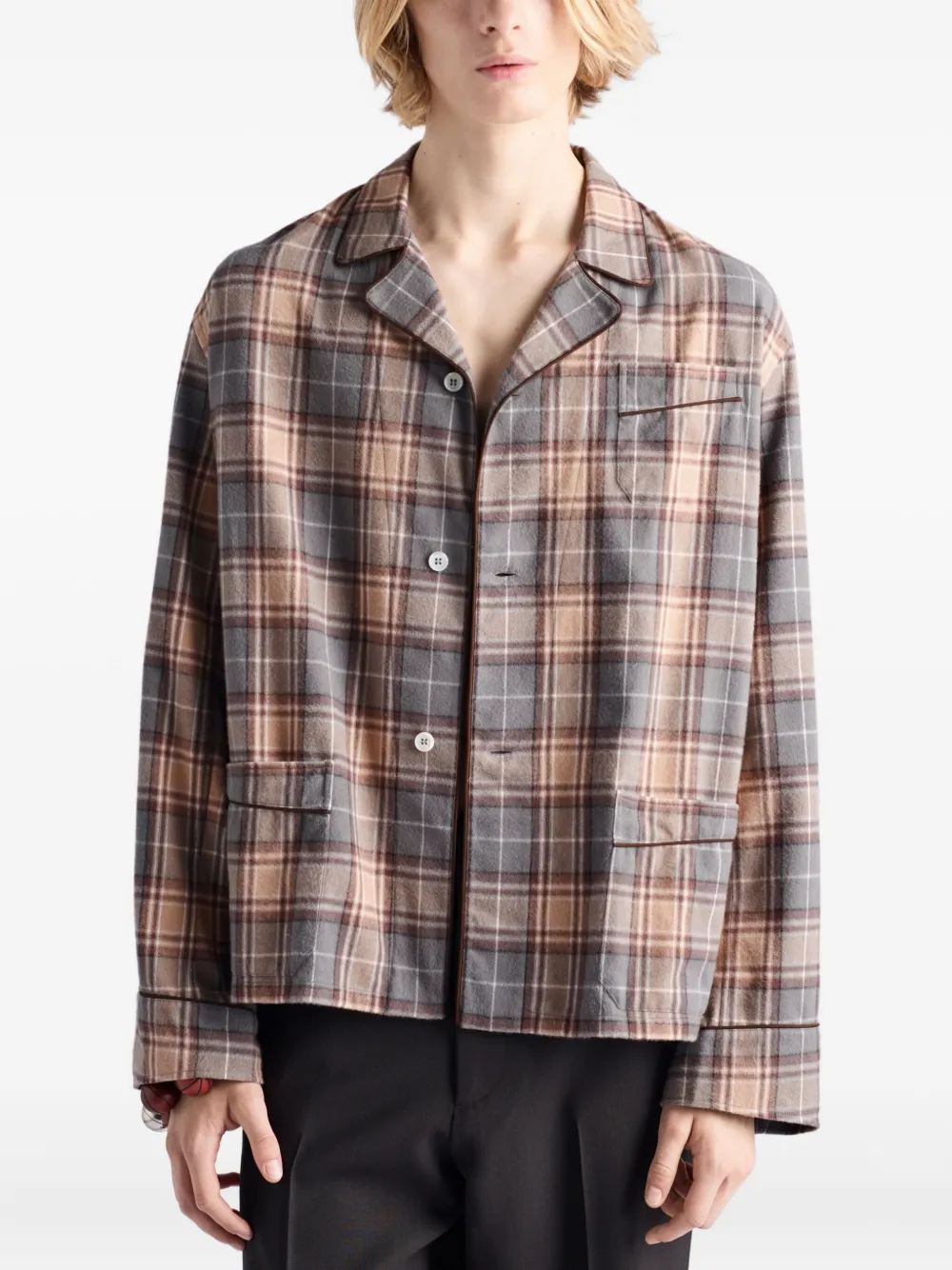 Клетчатая рубашка с накладными карманами Prada, коричневый 173 818₽