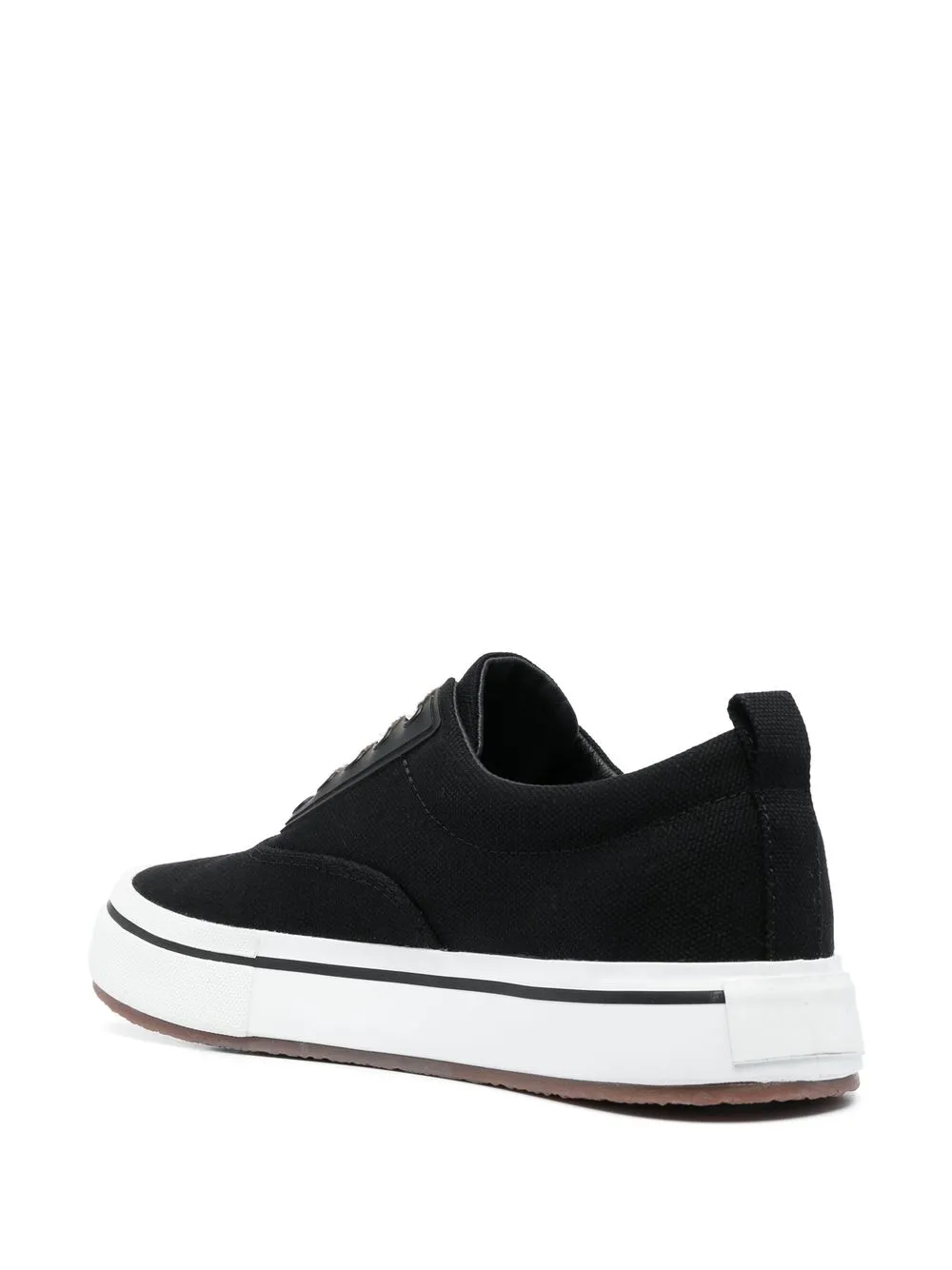 Черный/белый, парусина, шнуровка спереди, нашивка с логотипом сбоку, закругленный носок и плоская платформа.