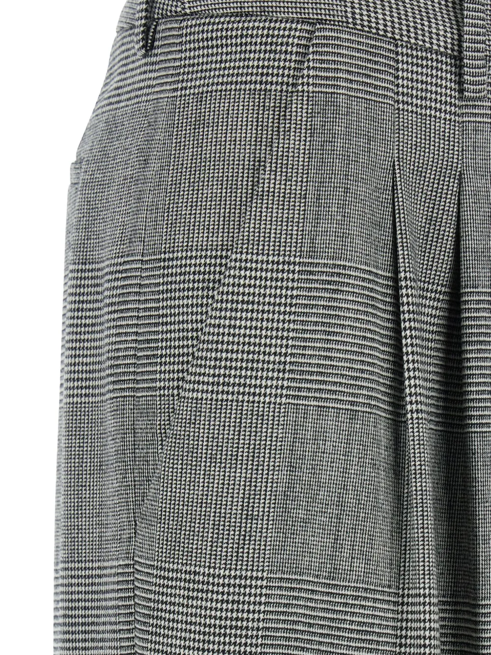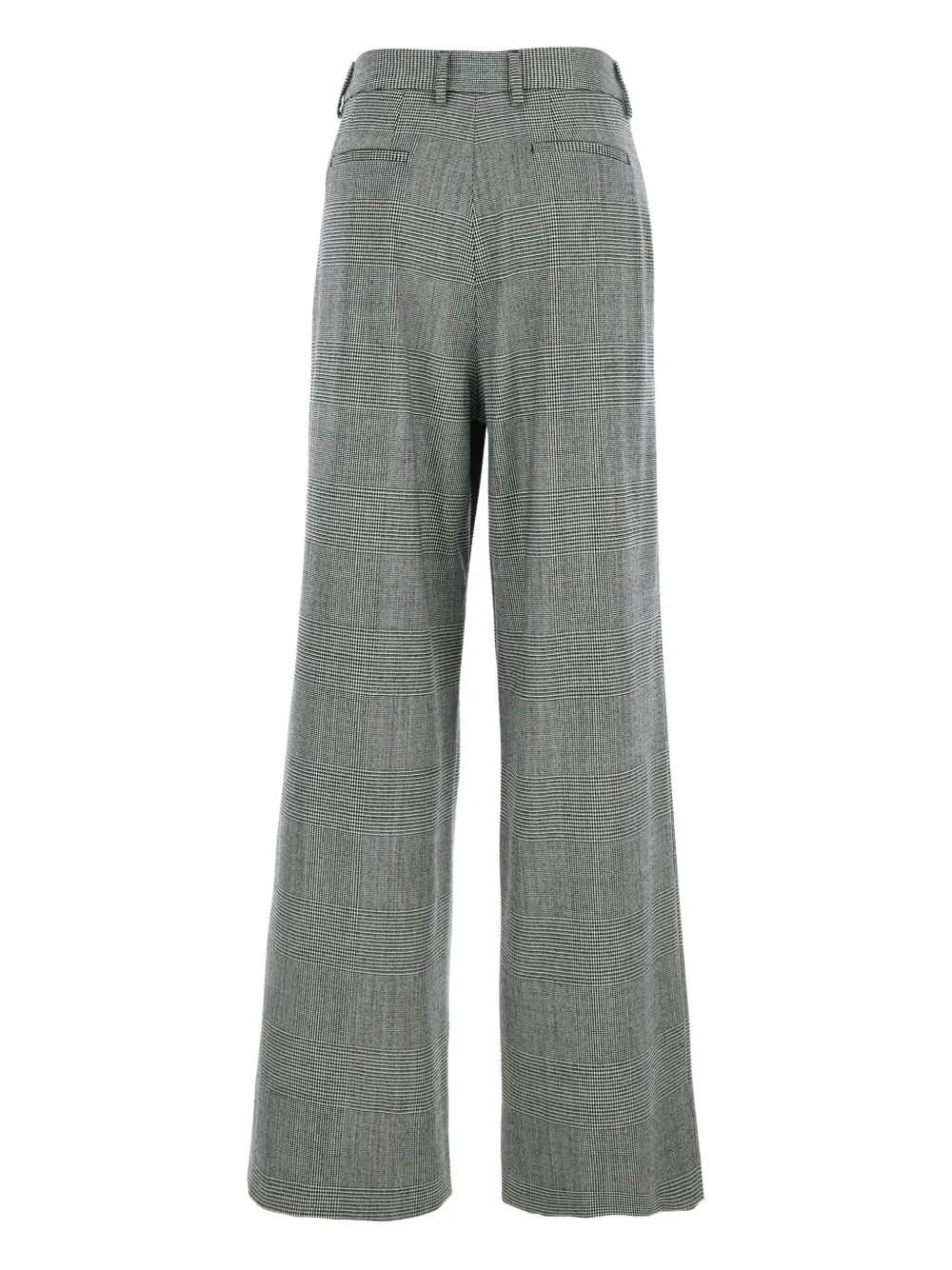 Серый клетчатый узор, плиссированные передние боковые карманы, прямой крой, высокая талия