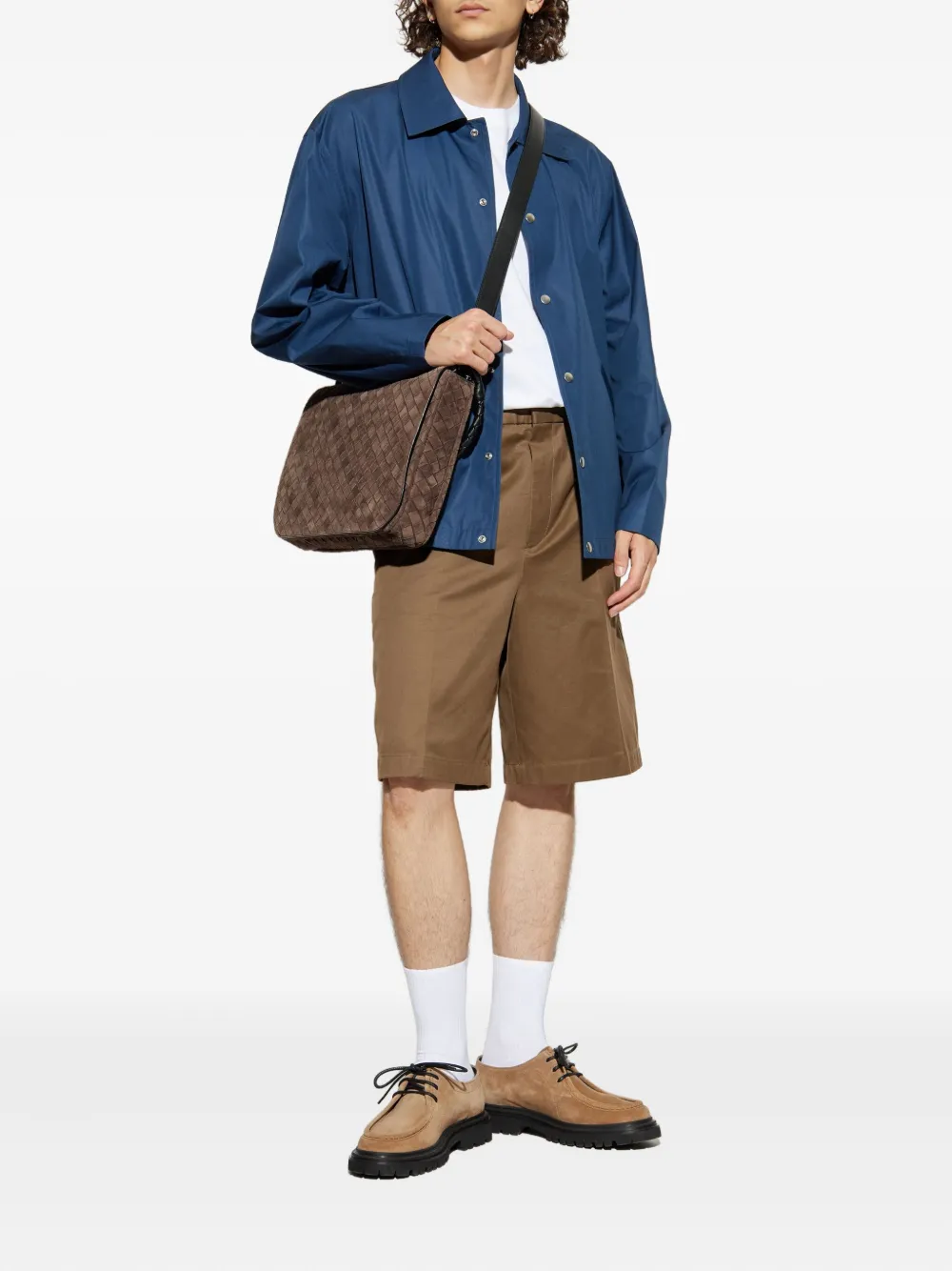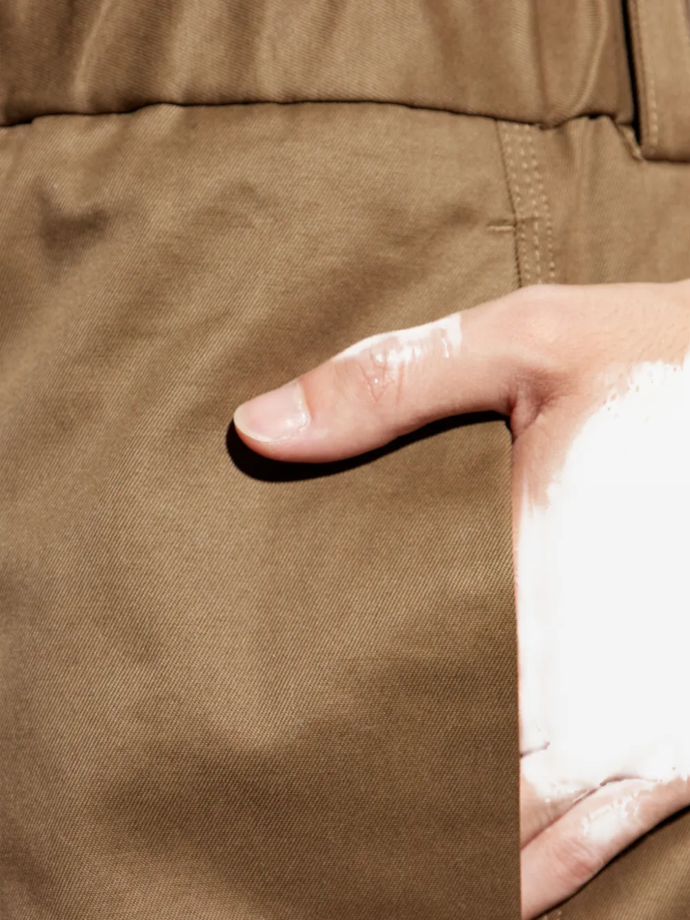 Коричневый хлопковый материал, плиссированный дизайн, плоские передние боковые карманы