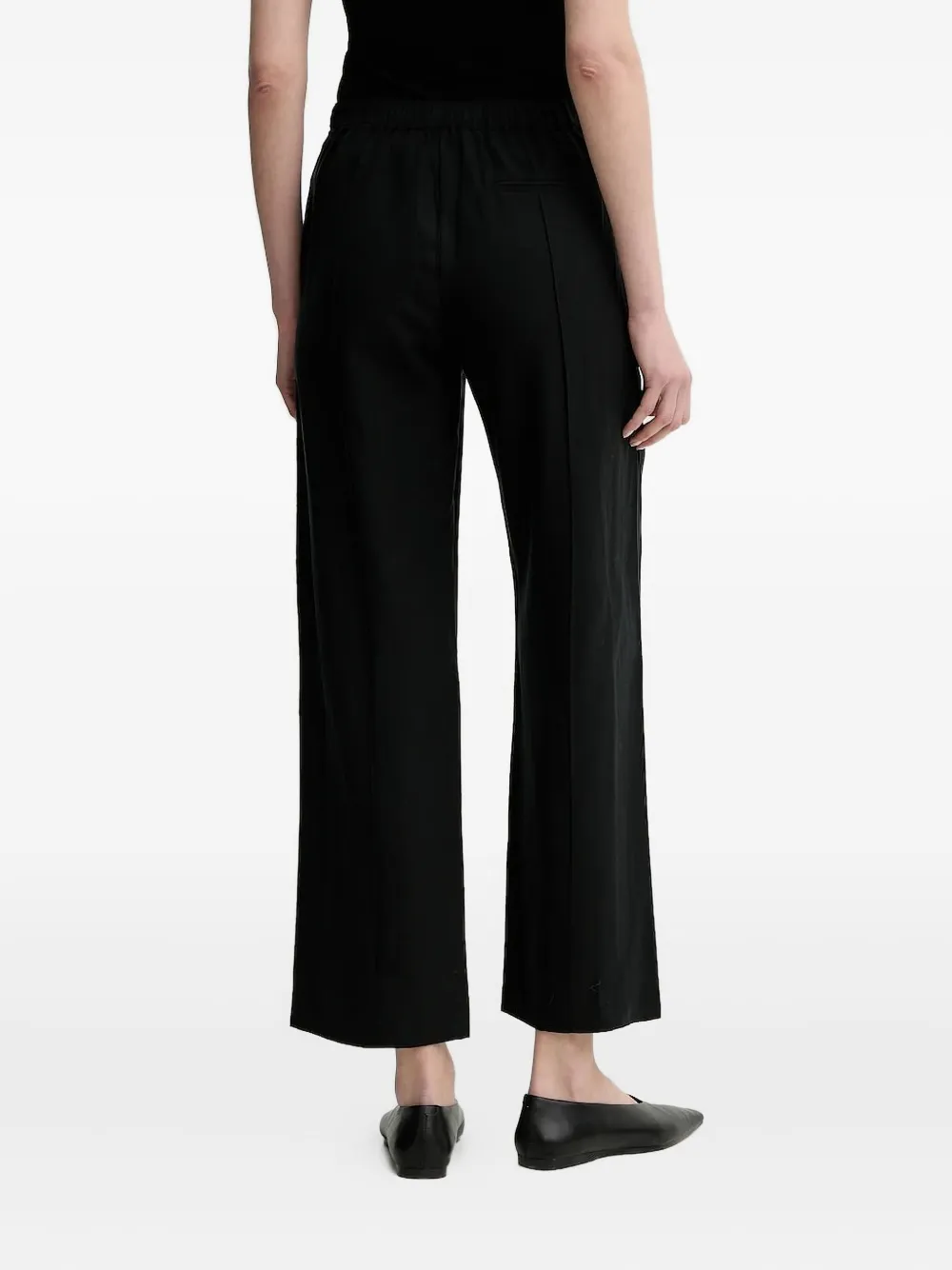 Черный плиссированный передний эластичный пояс с прямыми штанинами и боковыми карманами.