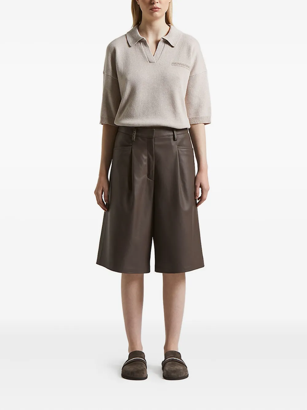 Кожаные шорты со складками Peserico, коричневый 73 446₽