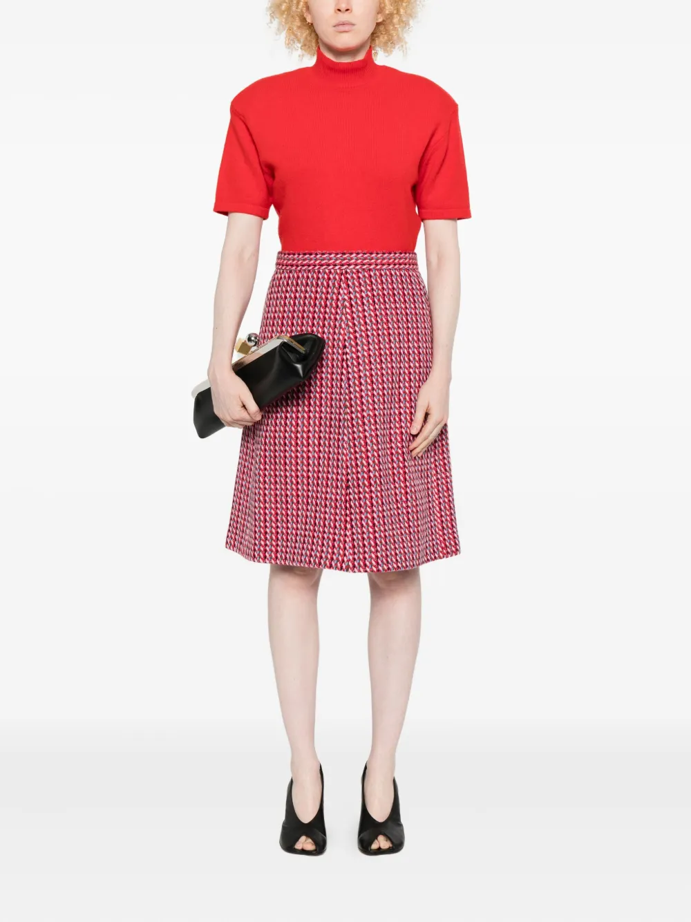 Красный плиссированный геометрический узор, прямой подол А-силуэта