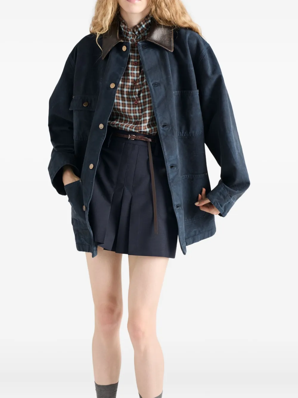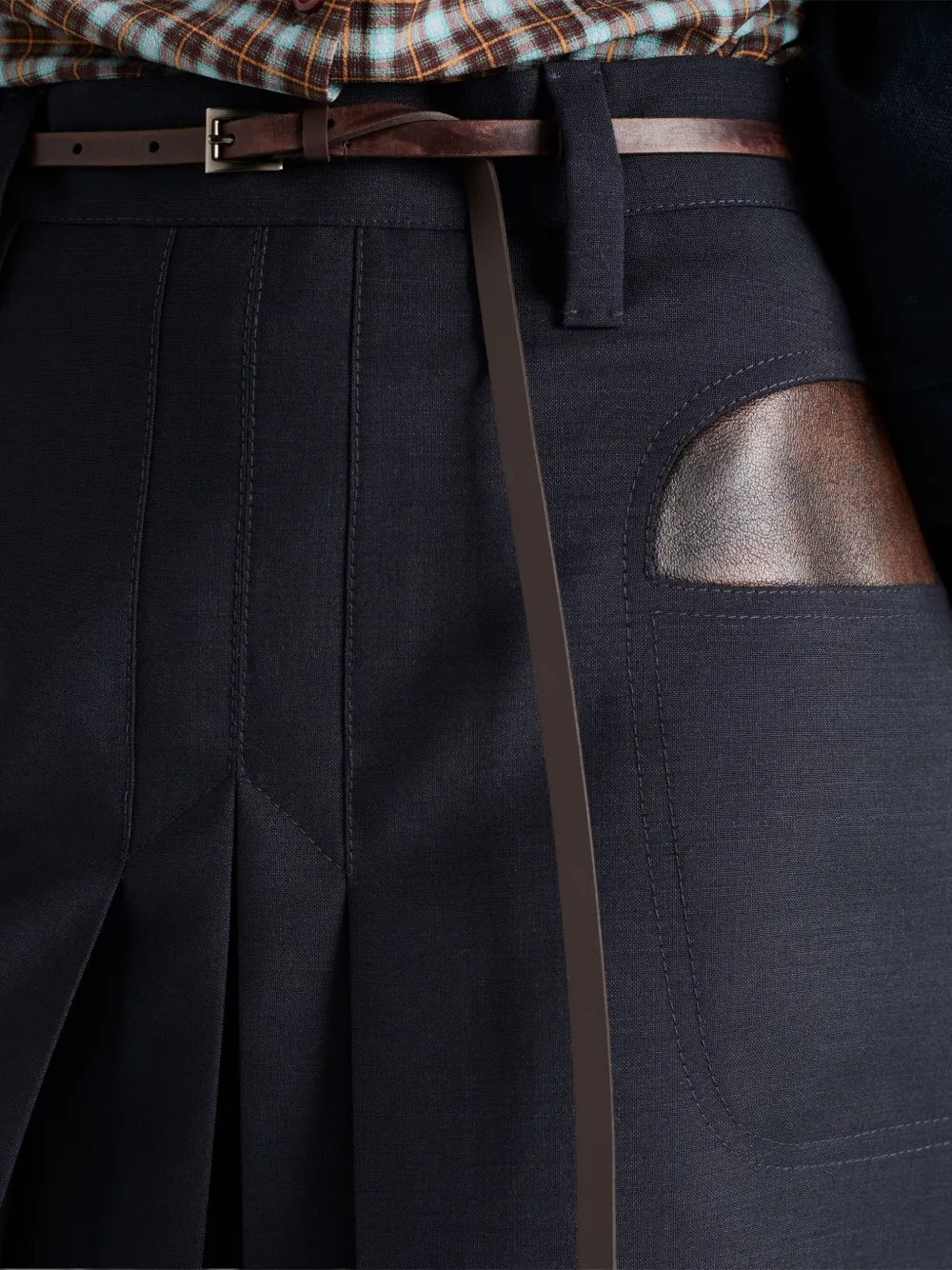 Плиссированная юбка мини с кожаным карманом Prada, синий 142 889₽