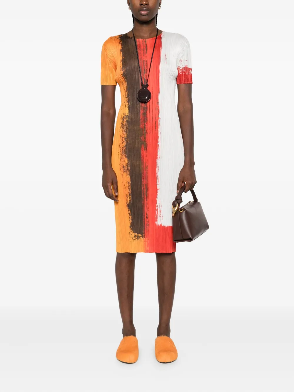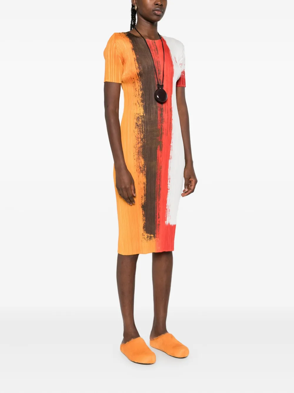 Платье миди с плиссировкой и эффектом краски Pleats Please Issey Miyake, красный
