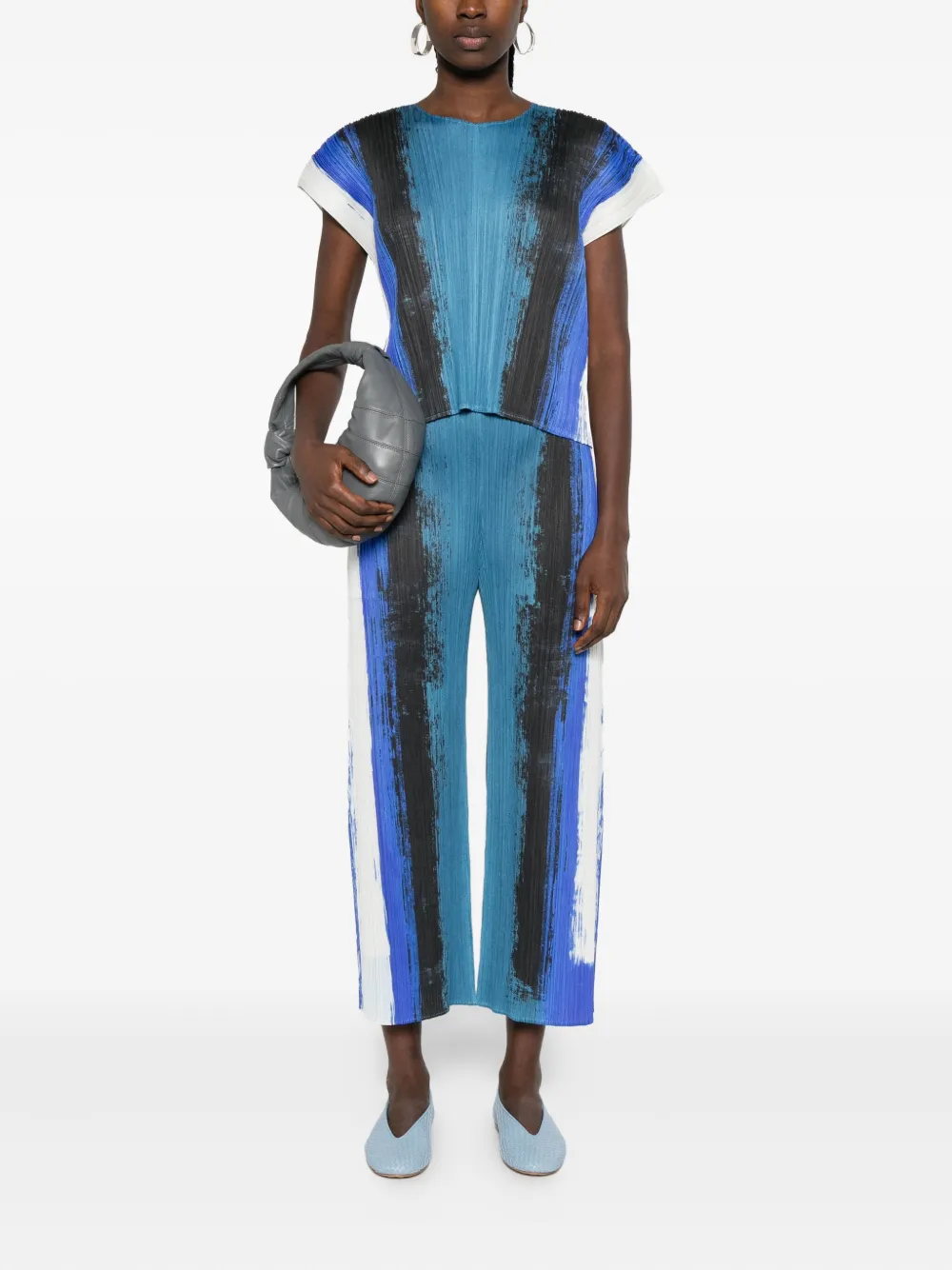 Плиссированные брюки с рисунком в виде мазков краски Pleats Please Issey Miyake, синий 69 639₽