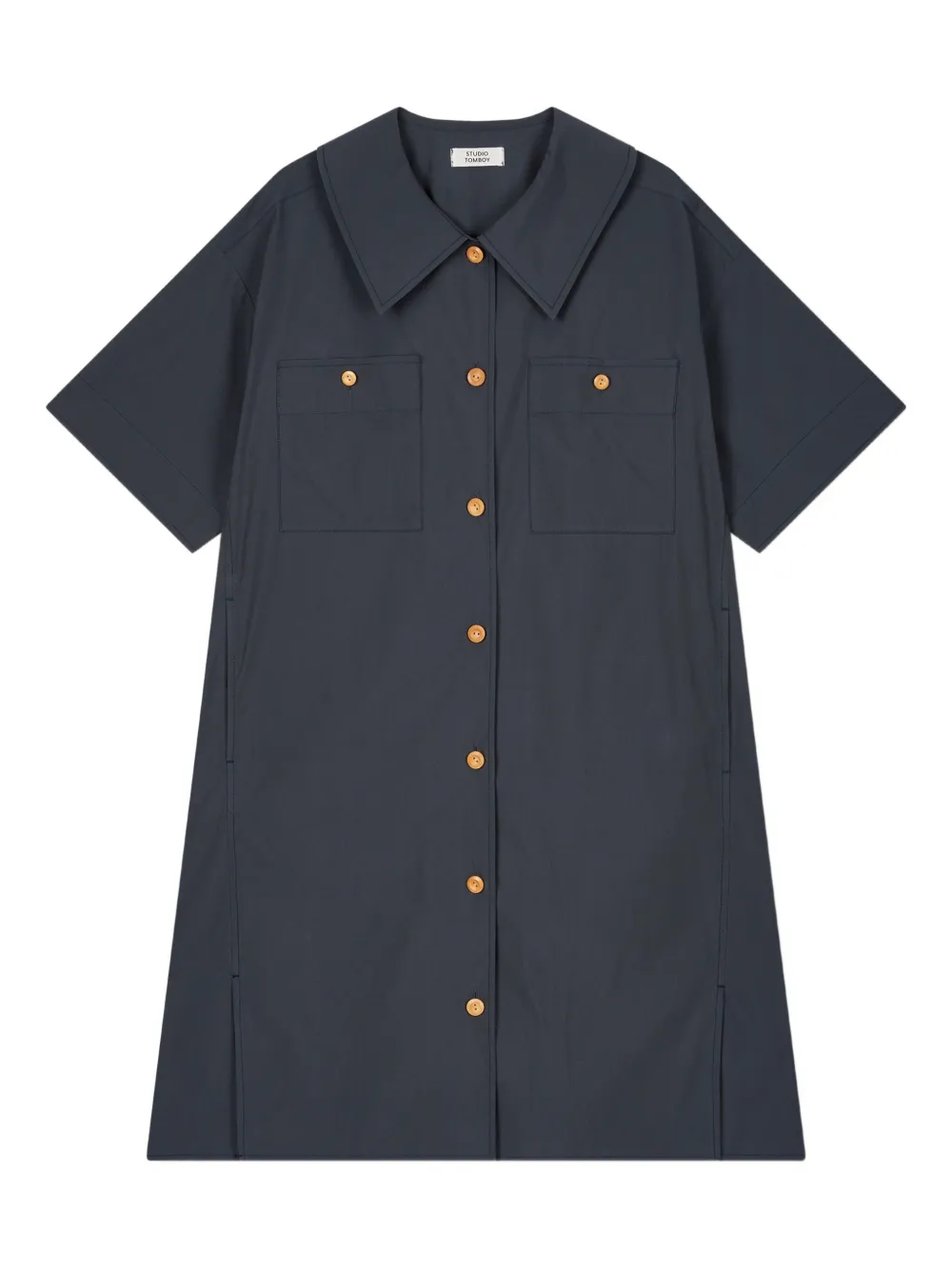 Мини-платье-рубашка с плиссированными карманами STUDIO TOMBOY, синий