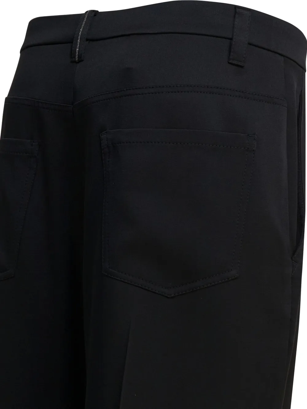 Черная складка спереди, два задних кармана, прорезные карманы, застежка-молния