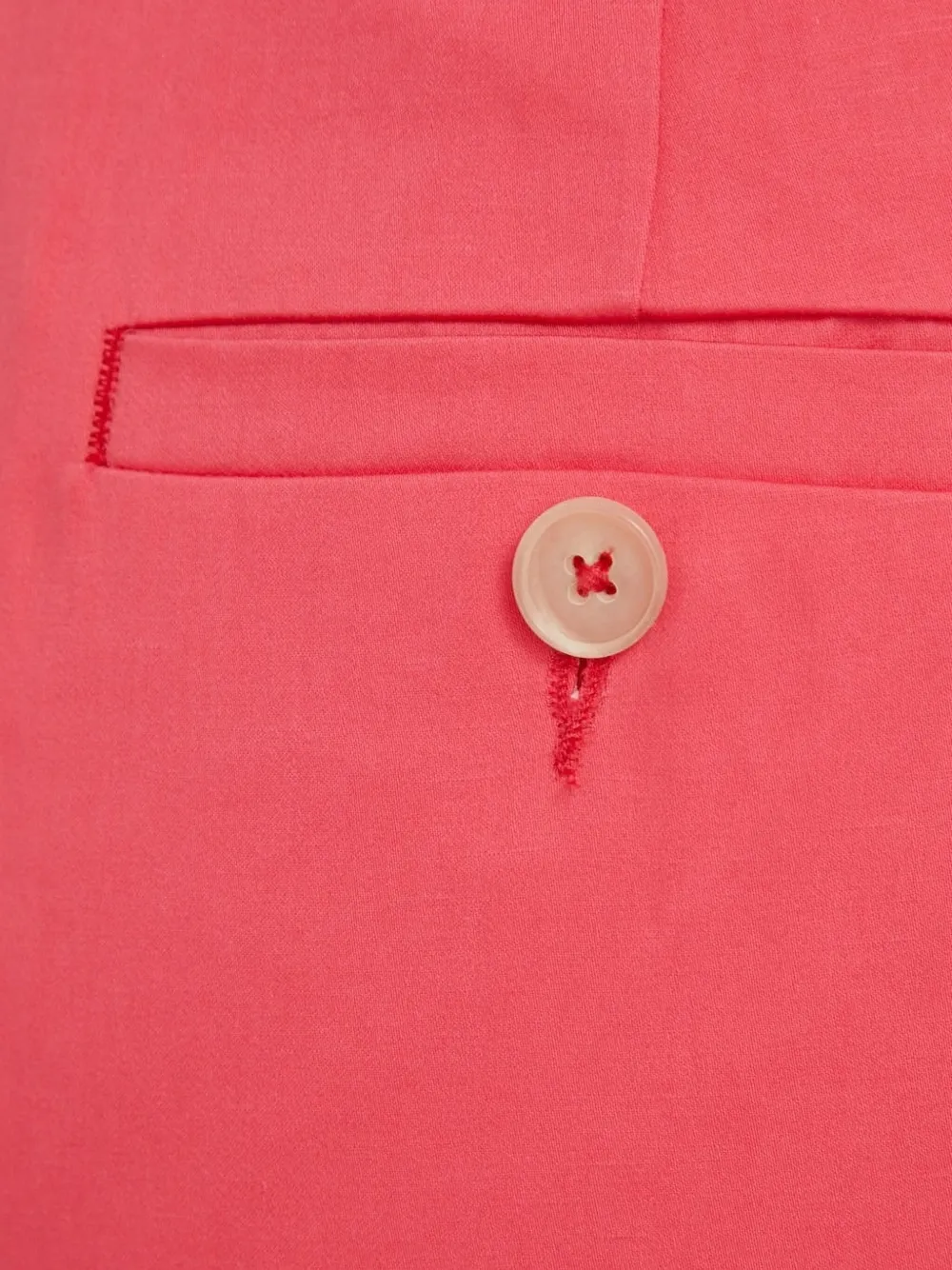 Кораллово-розовый плиссированный дизайн, застежка на пуговицы, прорезной карман, высокая талия, прямой крой