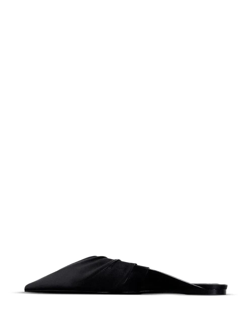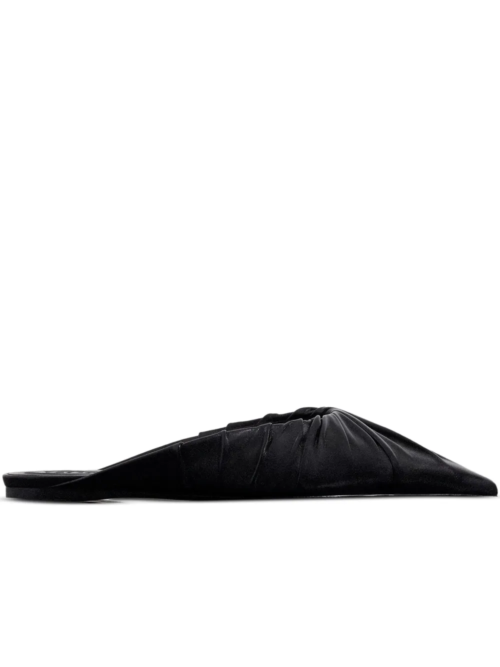 Черные кожаные туфли с острым носком, присборенными деталями, плоская подошва