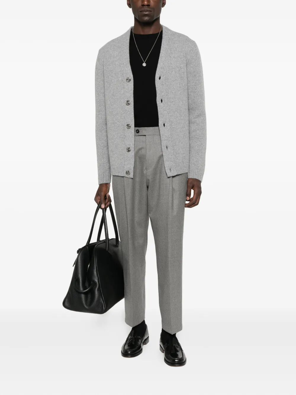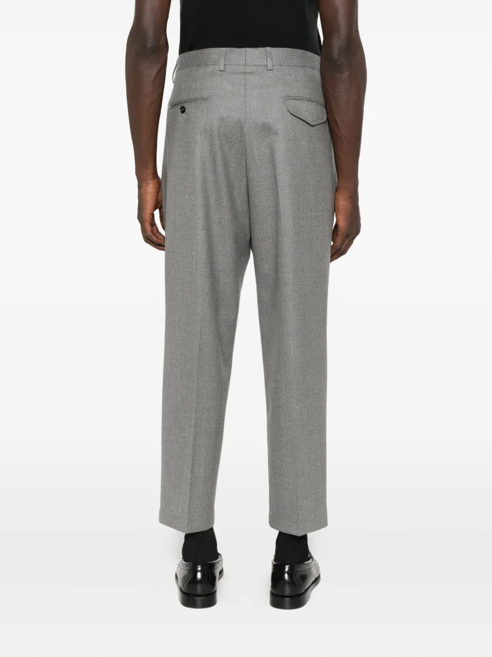 Светло-серые плиссированные передние боковые карманы с застежкой на пуговицы.
