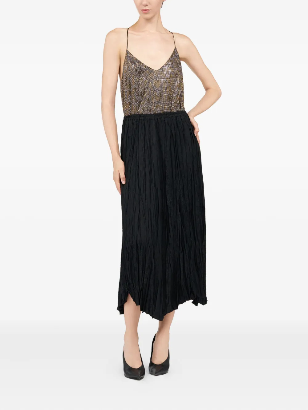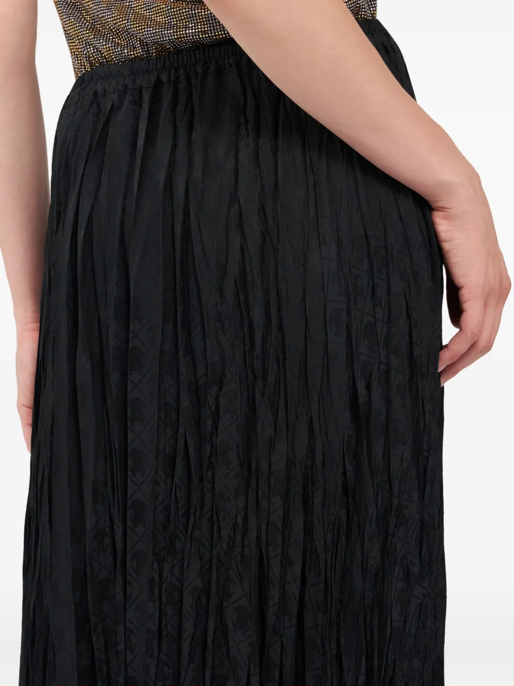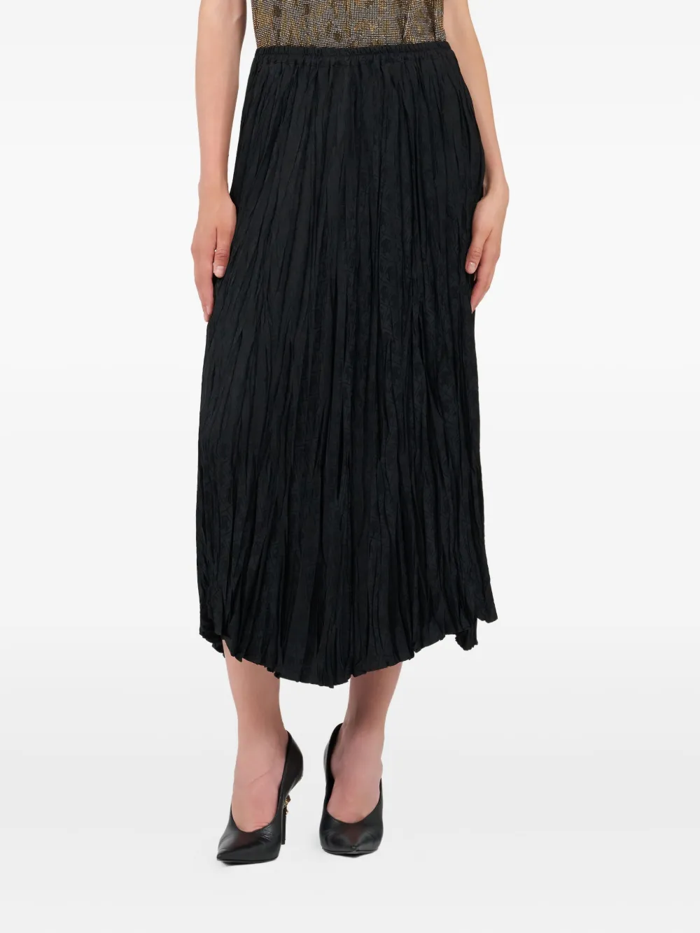 Черный плиссированный дизайн, эластичный пояс, тональный узор, жатая текстура, длина миди