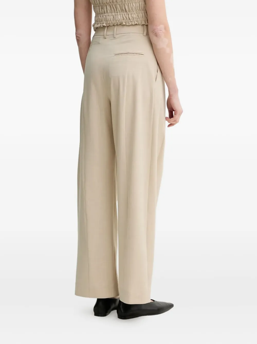 Бежевые плиссированные передние прямые штанины боковые карманы