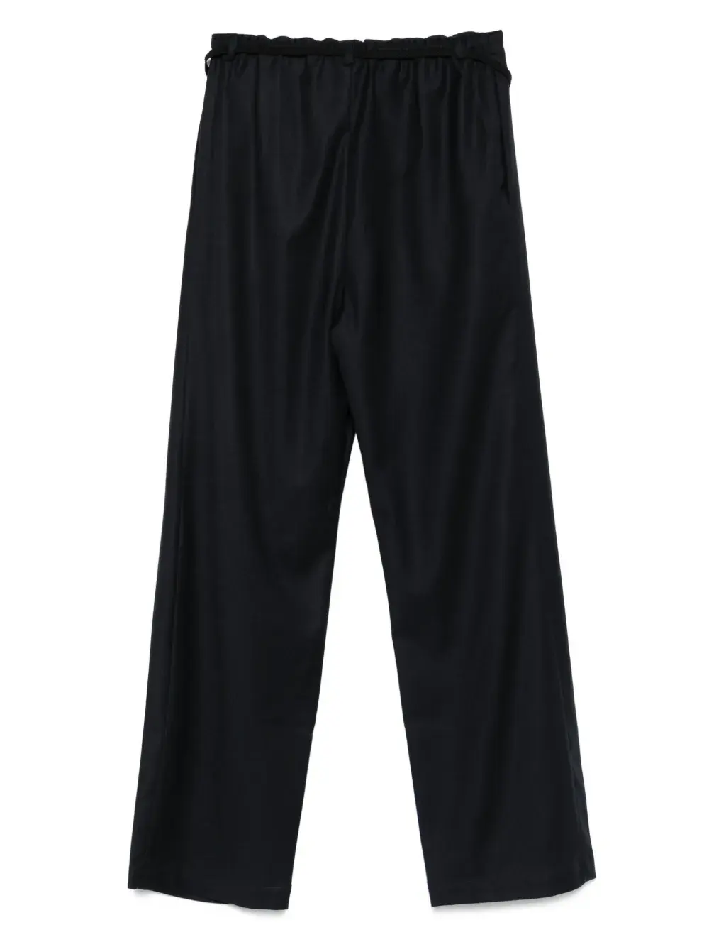 Темно-синие плиссированные брюки спереди, затягивающиеся на шнурок, высокая талия