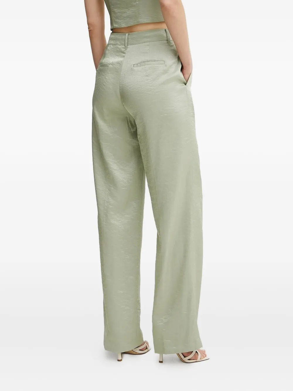Зеленые складки спереди, высокая талия, застежка на пуговицы, боковые карманы