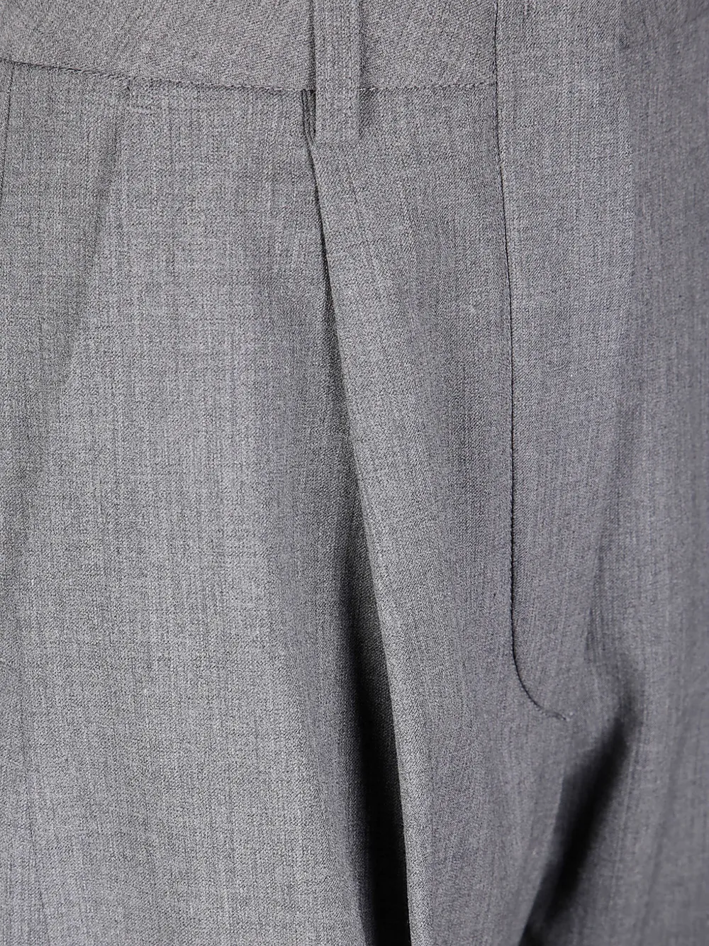 Серая шерстяная смесь, передние складки, боковые карманы, прямой брючины.