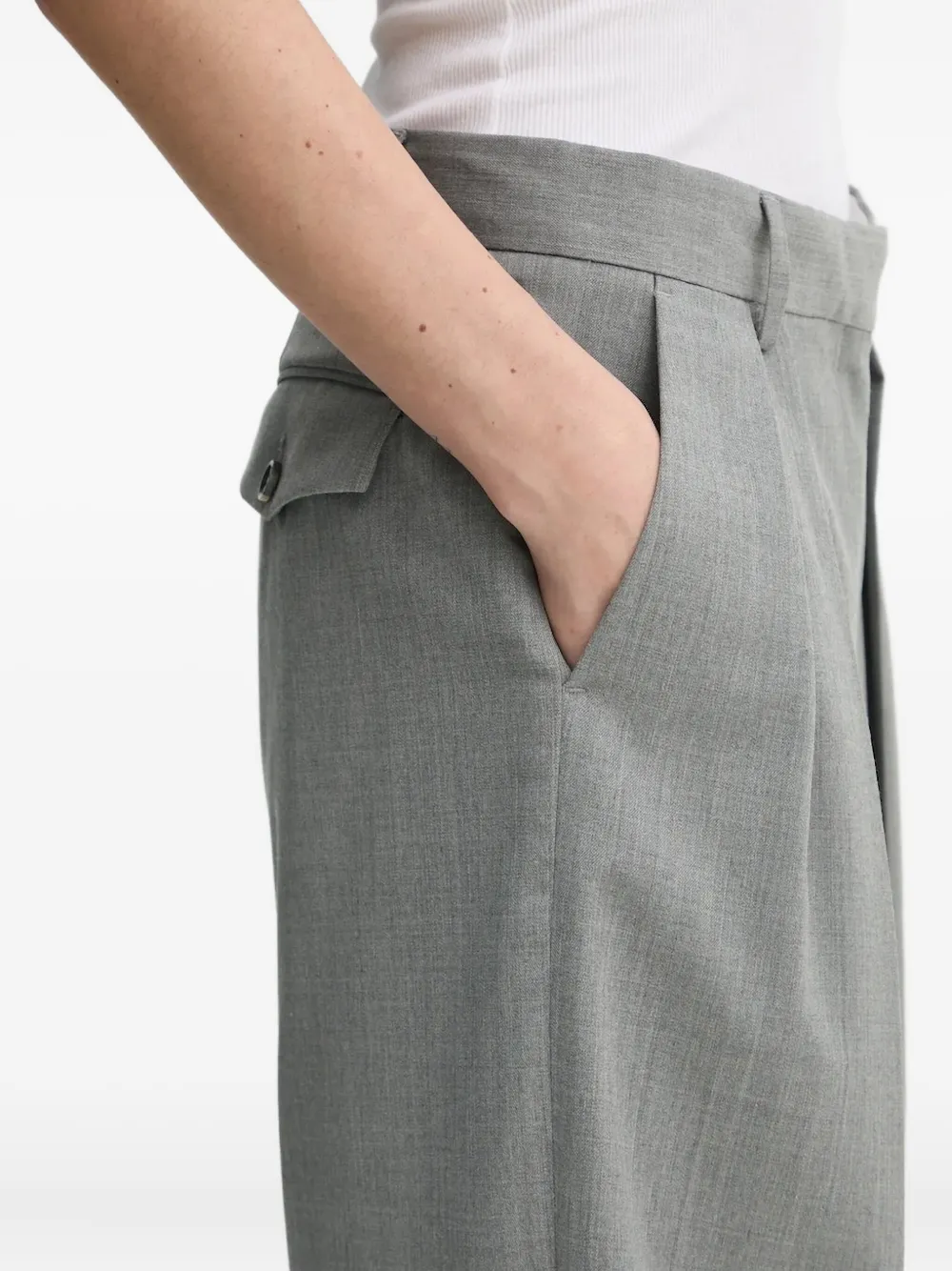 Серые плиссированные передние шлевки для ремня, прорезные карманы