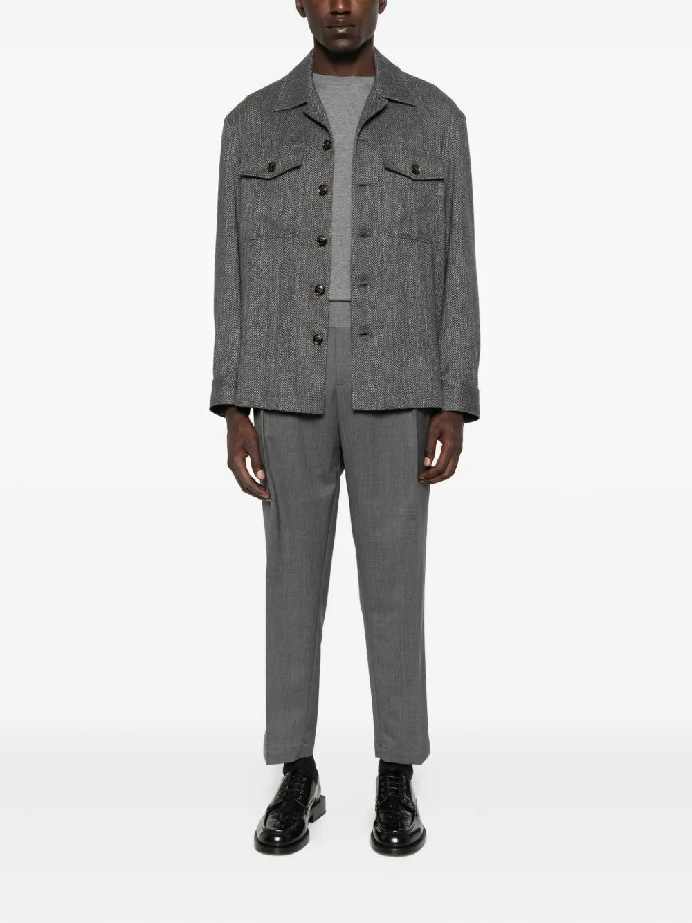 Серая плиссированная застежка на пуговицы спереди